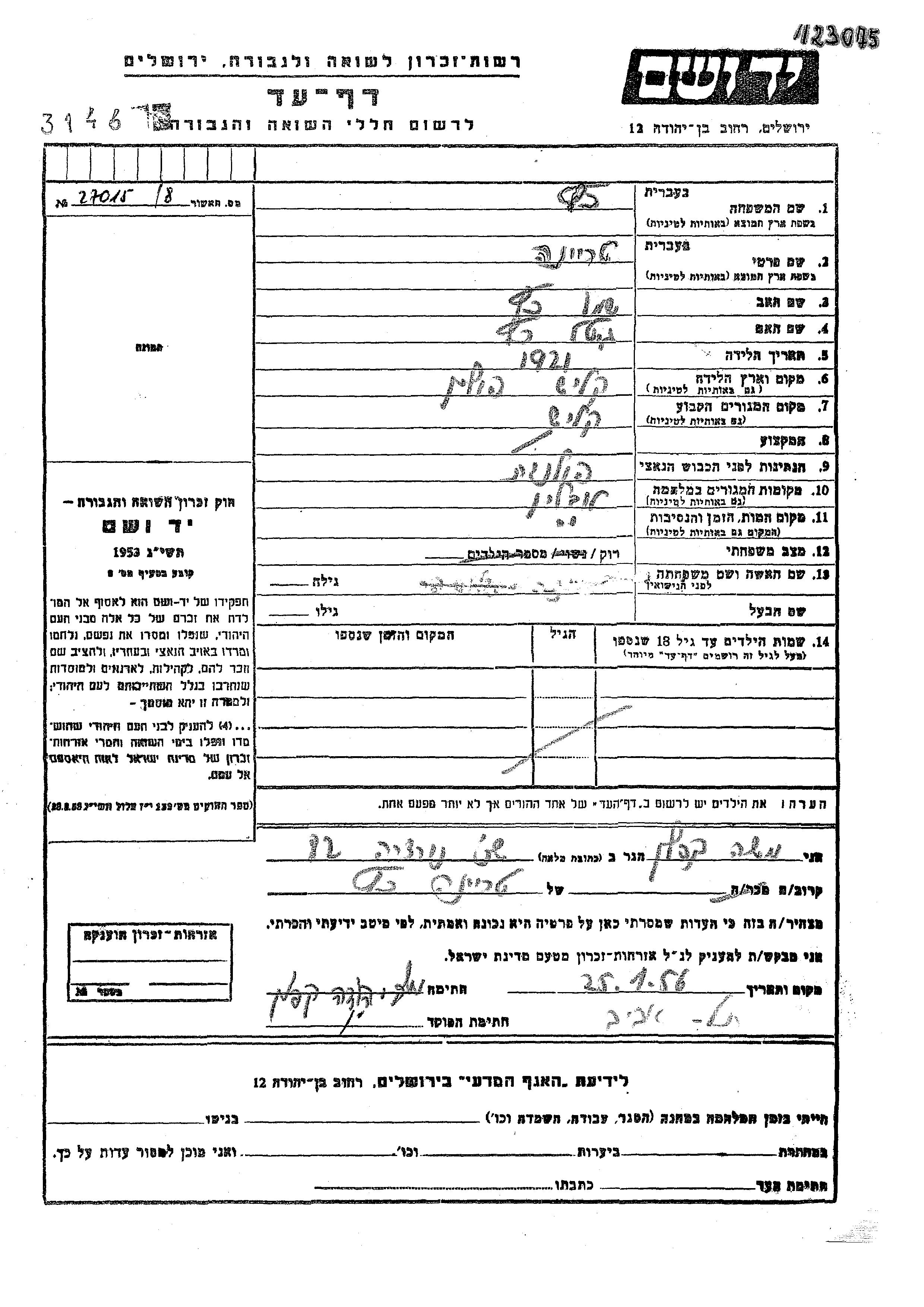 Yad Vashem - Pages of Testimony Names Memorial Collection