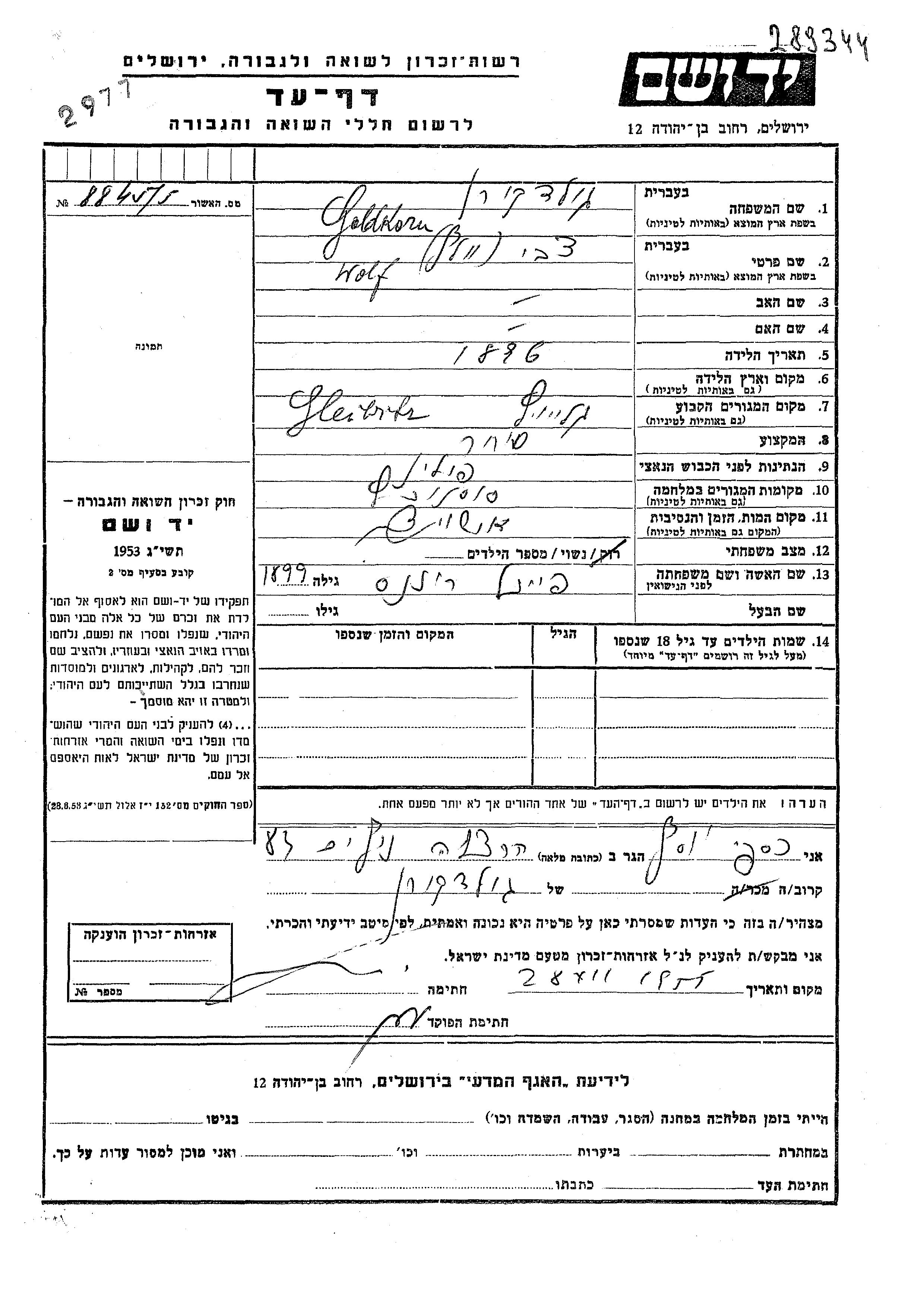Yad Vashem - Pages of Testimony Names Memorial Collection