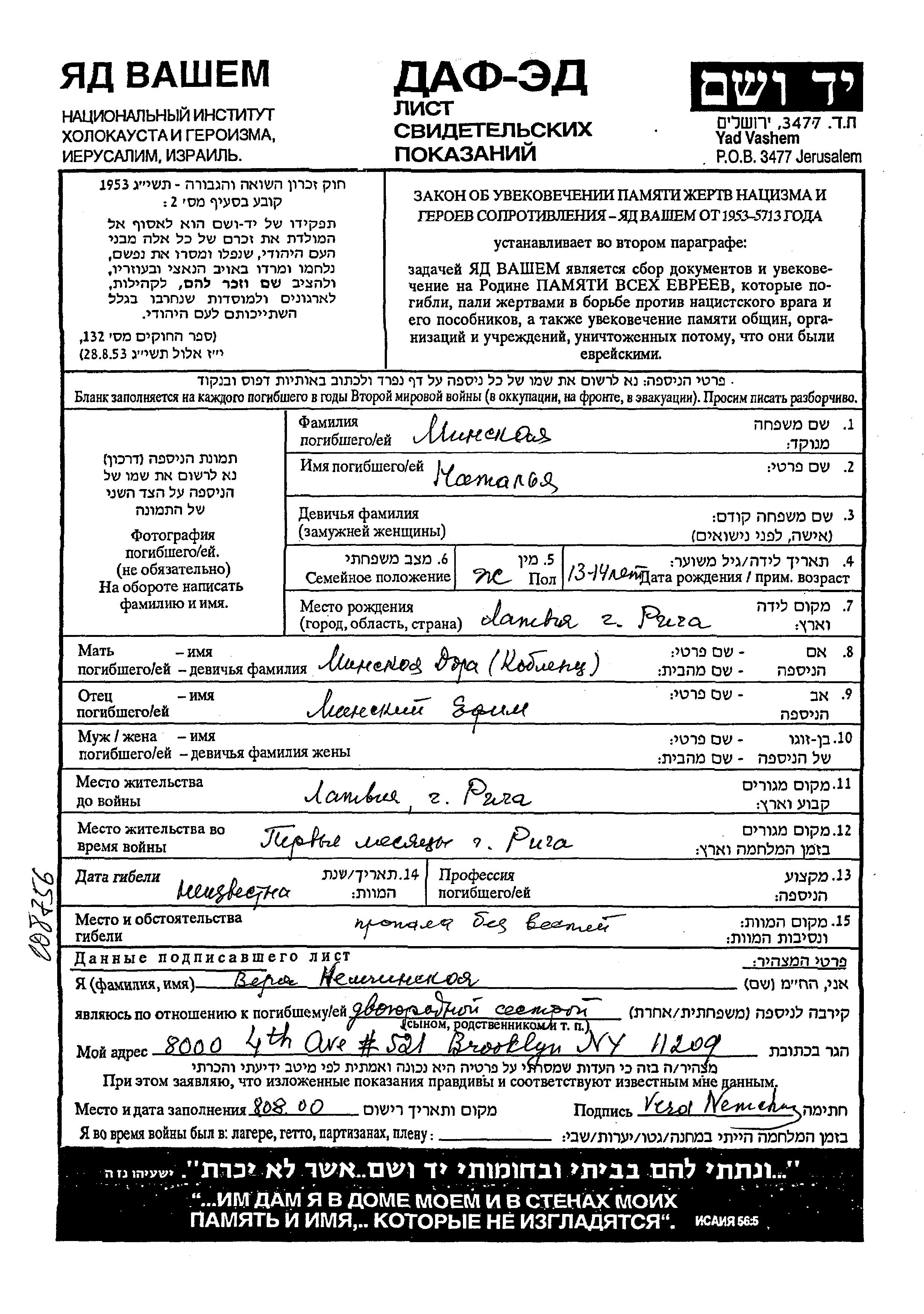 Yad Vashem - Pages of Testimony Names Memorial Collection