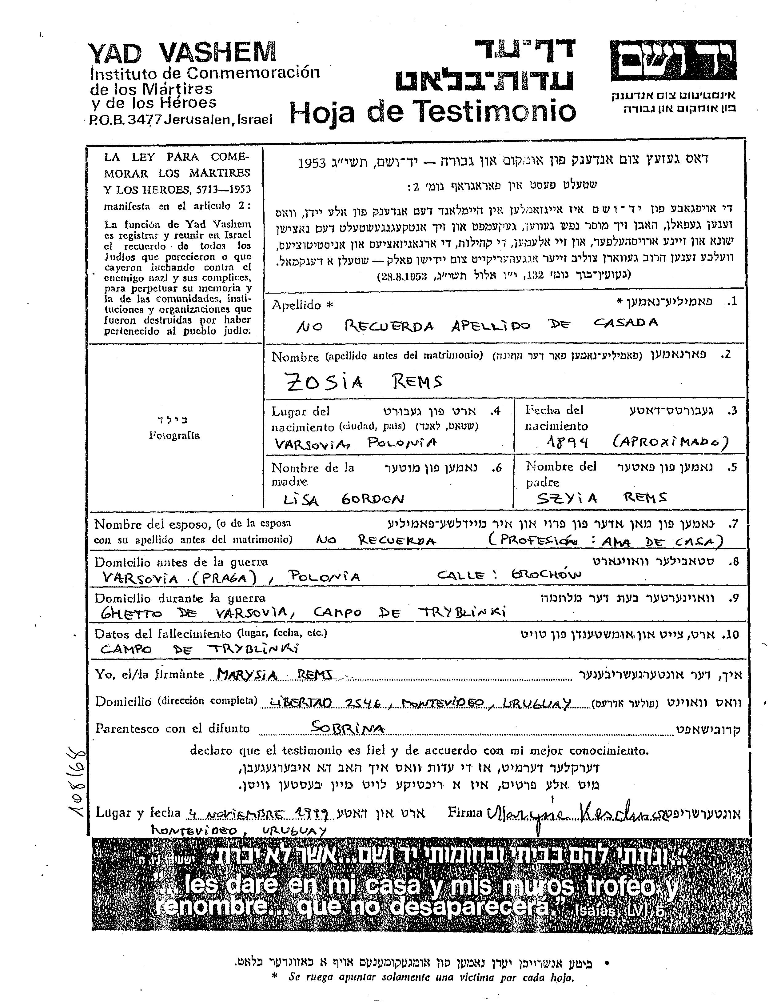 Yad Vashem - Pages of Testimony Names Memorial Collection