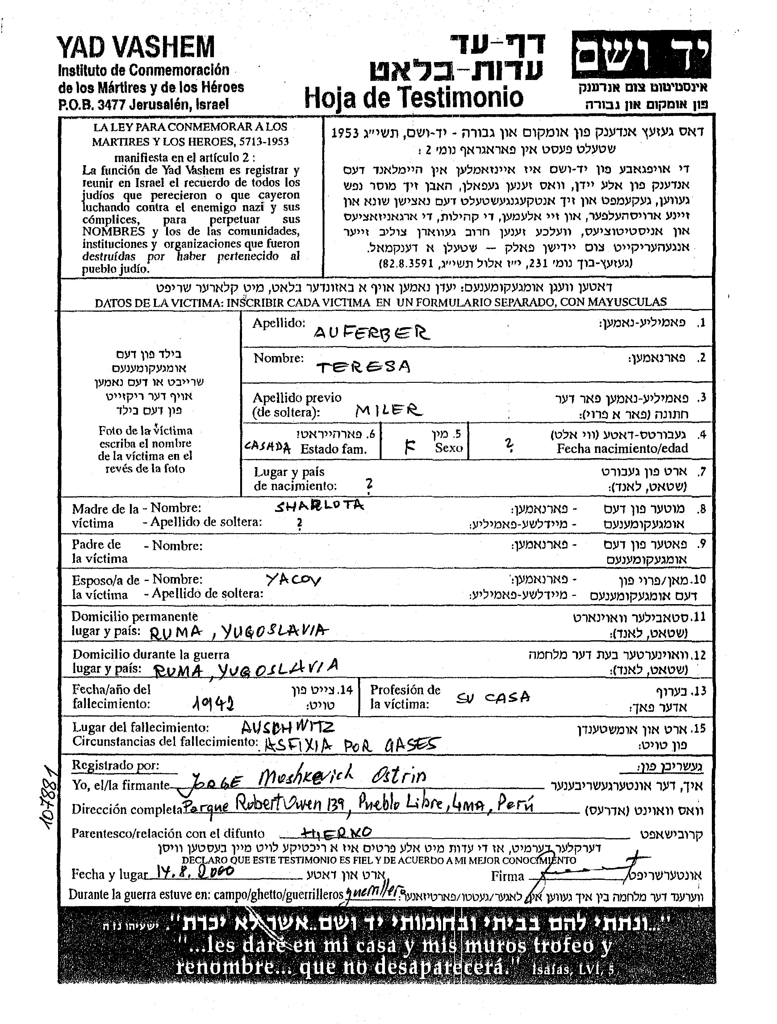 Recherche par lieu de résidence permanente avant la Shoah, ville, village, département, région ou pays.
