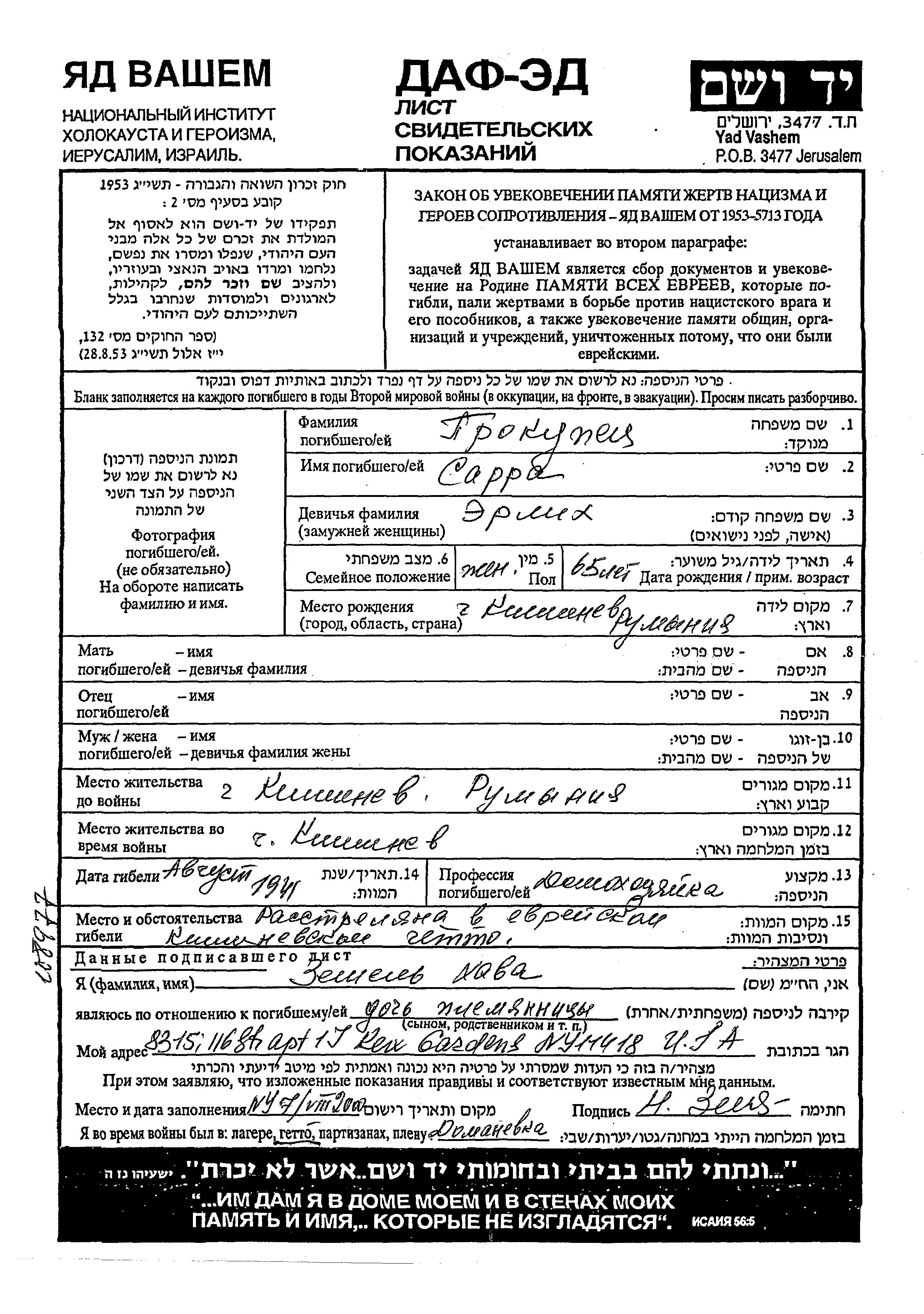 Yad Vashem - Pages of Testimony Names Memorial Collection