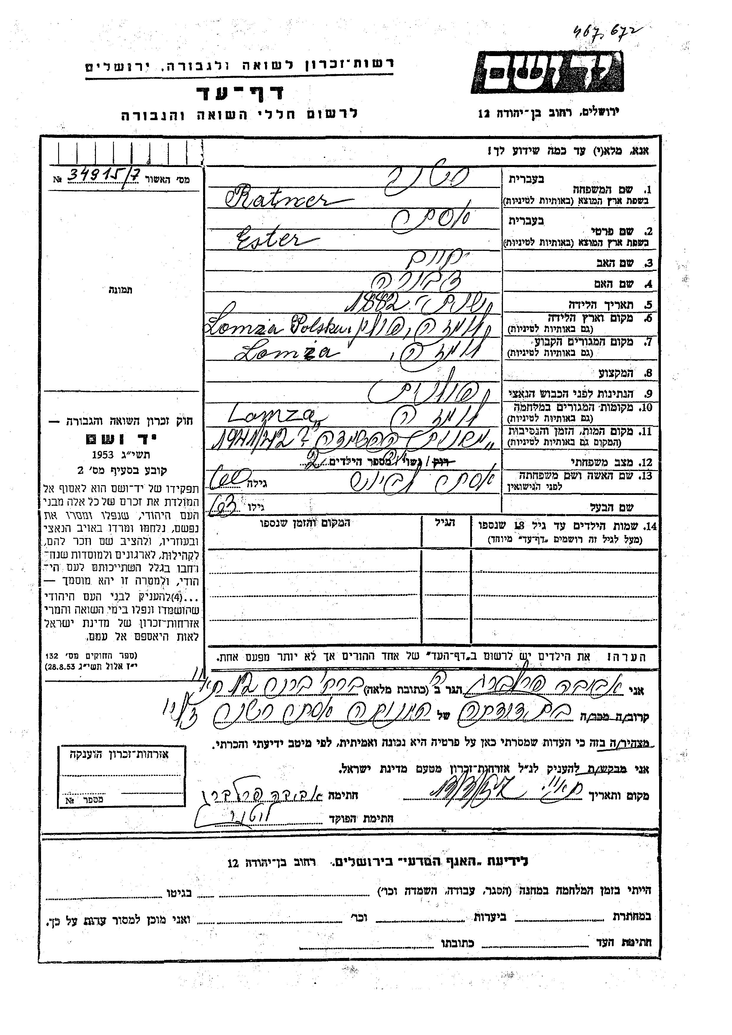 Yad Vashem - Pages of Testimony Names Memorial Collection