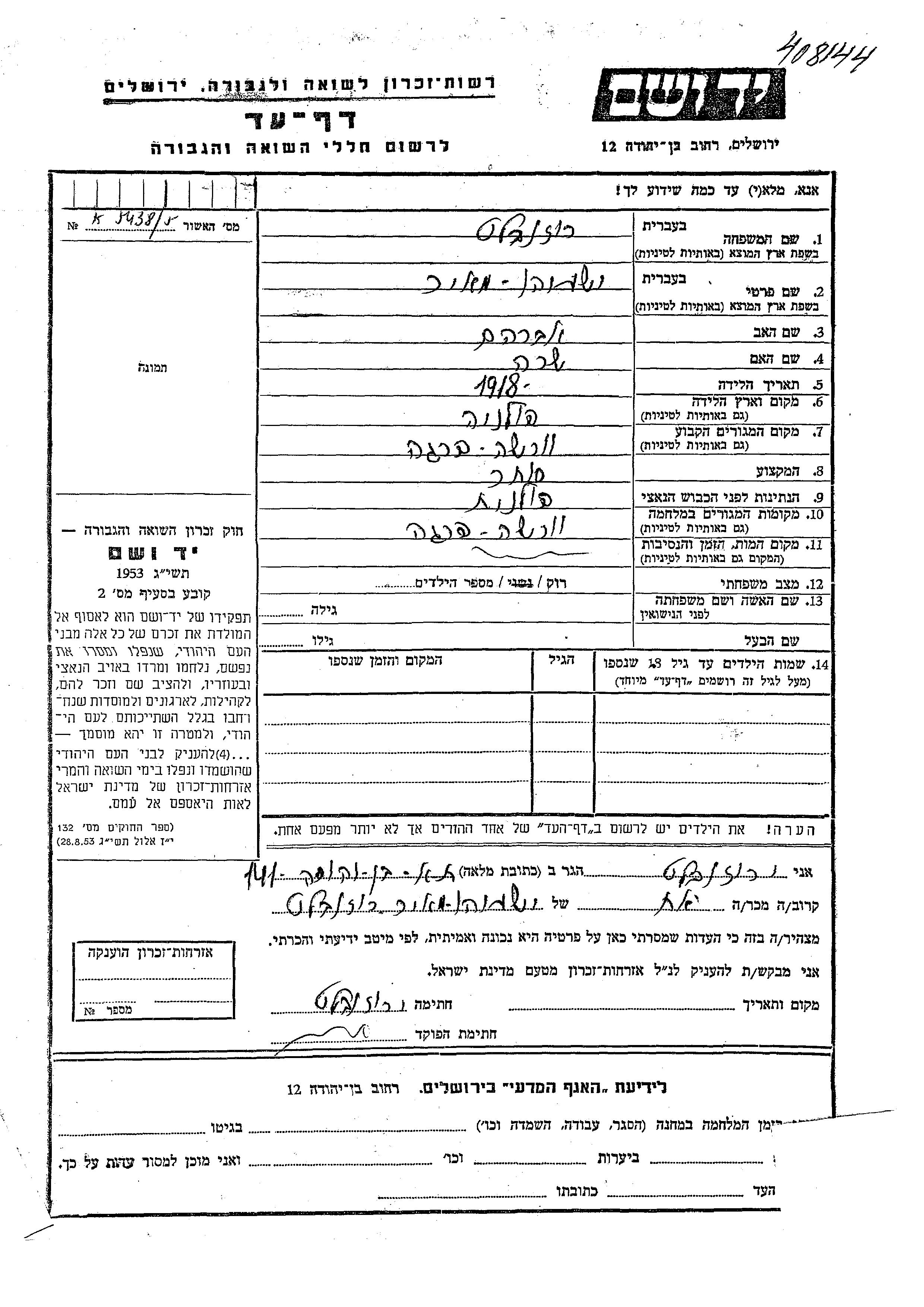 Yad Vashem - Pages of Testimony Names Memorial Collection