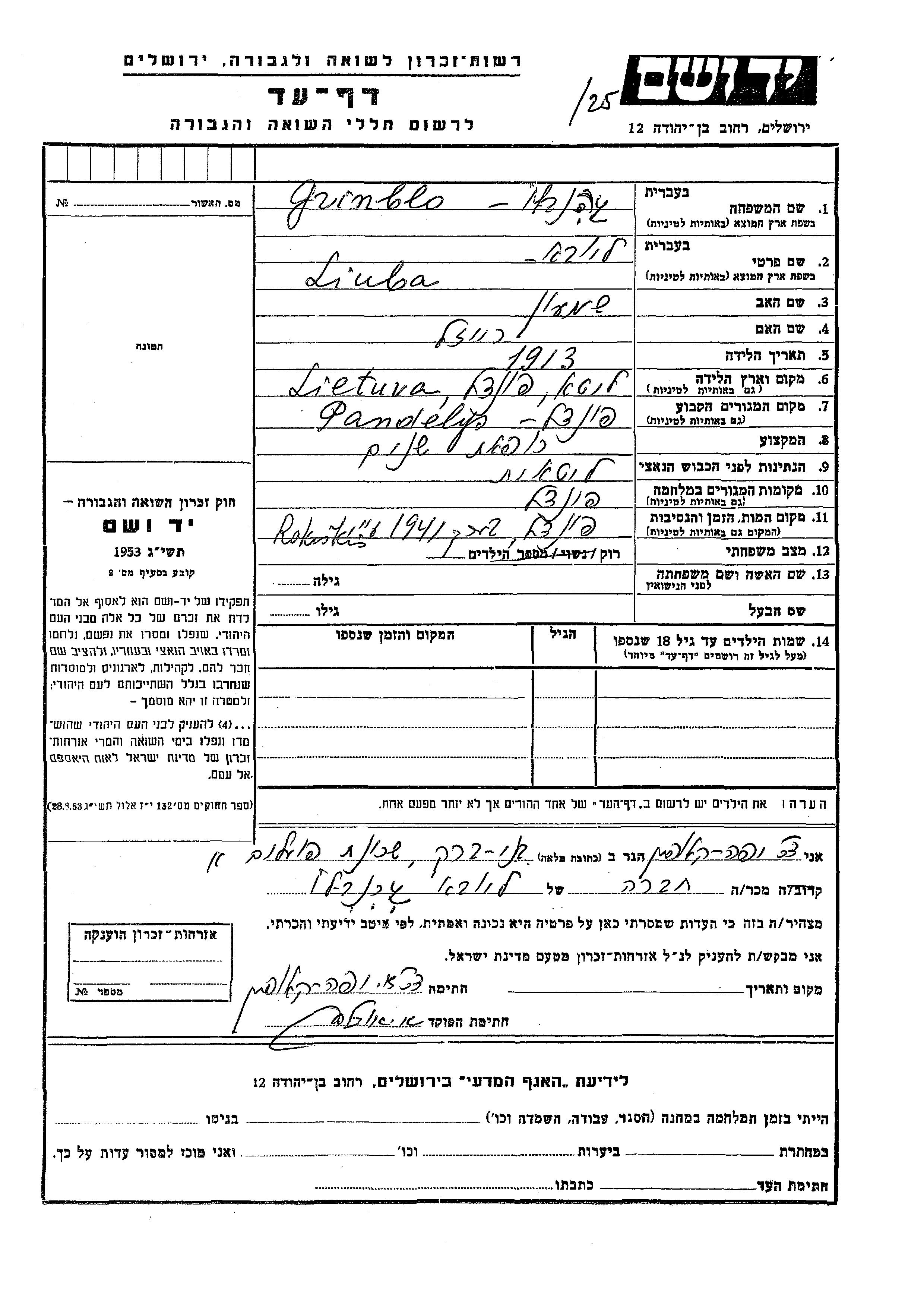 Yad Vashem - Pages of Testimony Names Memorial Collection
