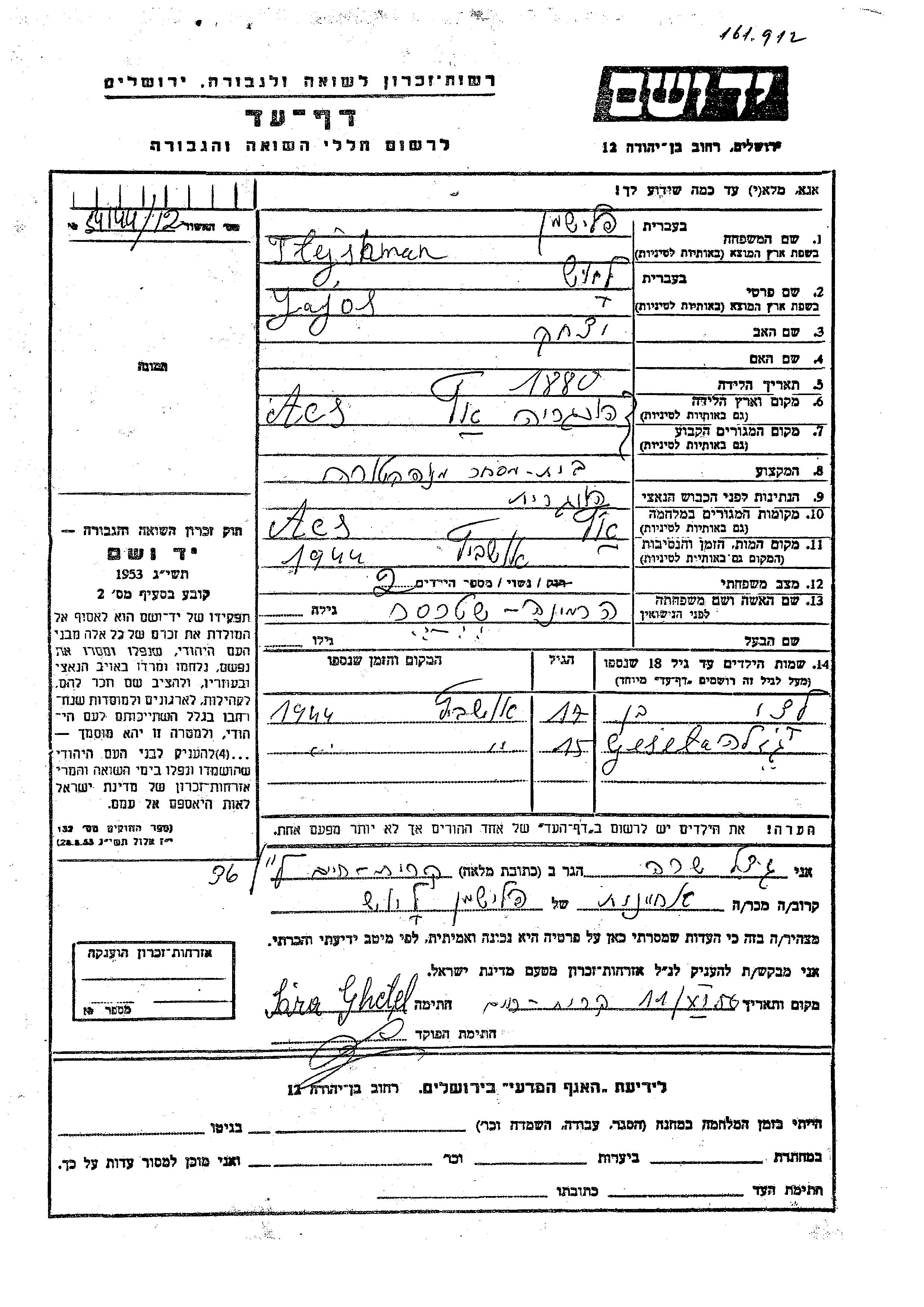 Yad Vashem - Pages of Testimony Names Memorial Collection