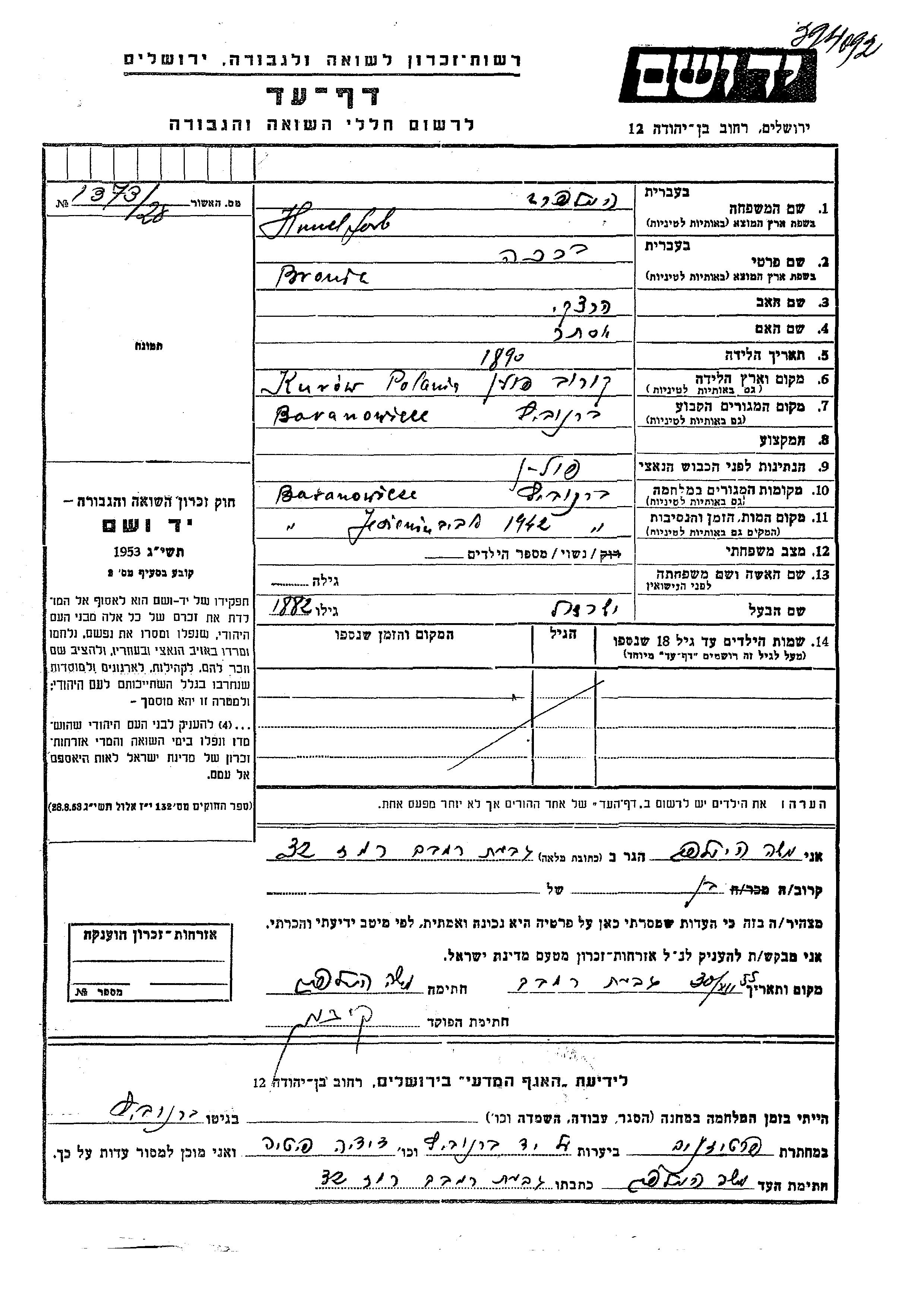 Yad Vashem - Pages of Testimony Names Memorial Collection