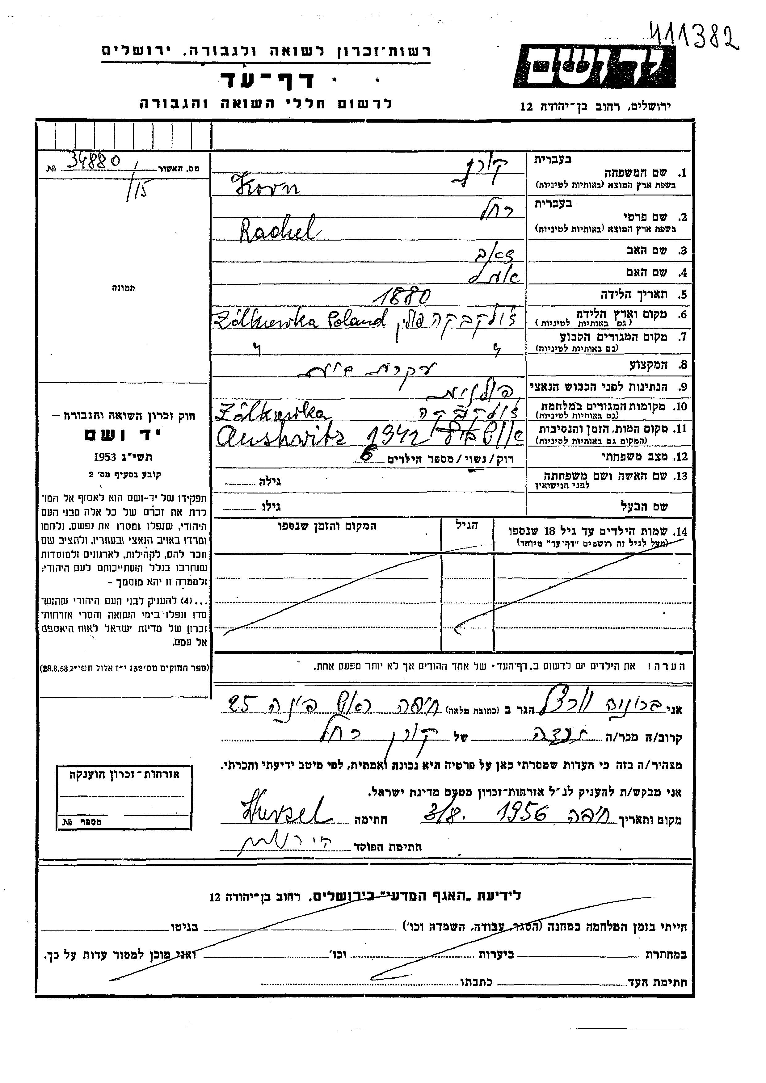 Yad Vashem - Pages of Testimony Names Memorial Collection