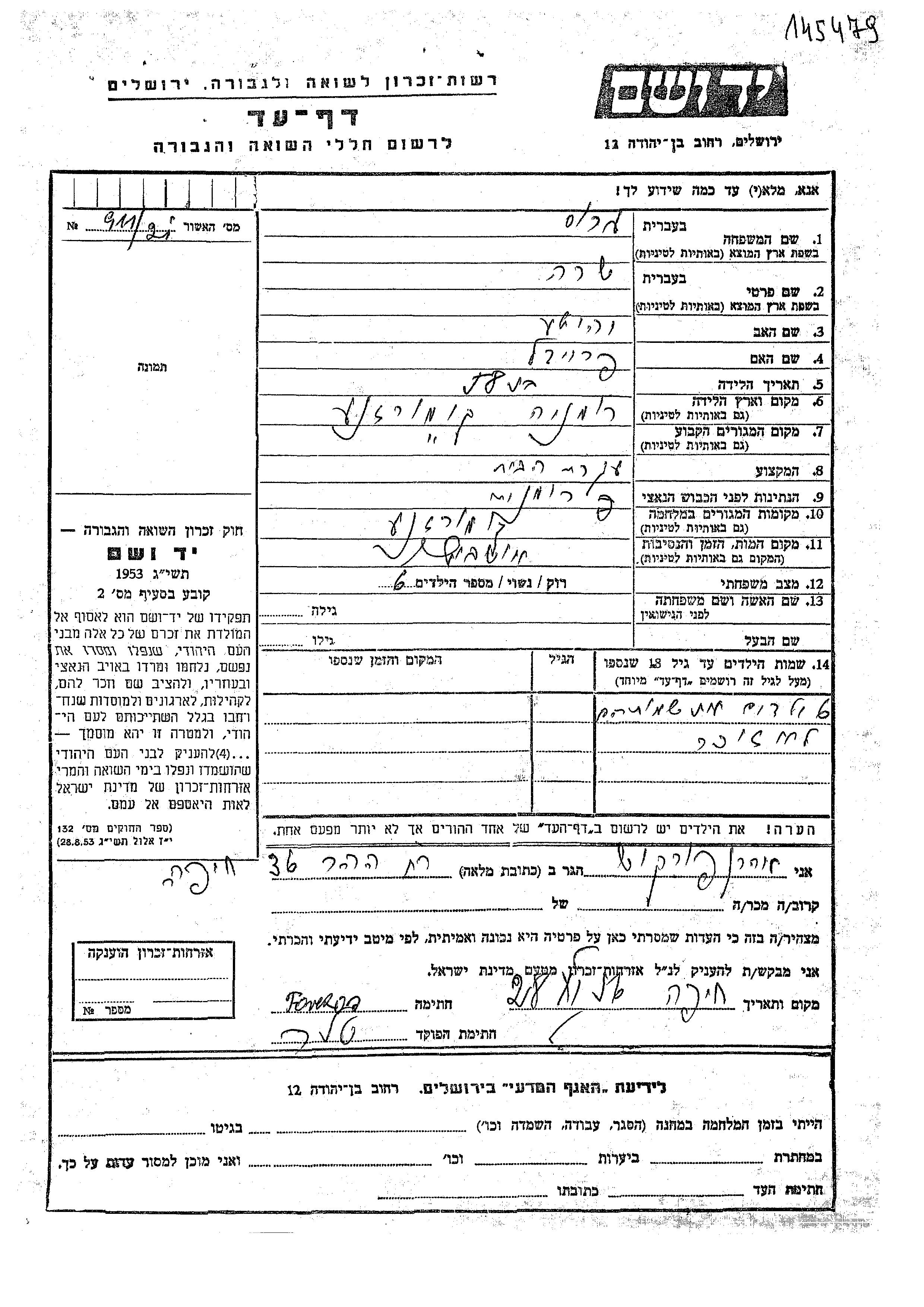 Recherche par lieu de résidence permanente avant la Shoah, ville, village, département, région ou pays.