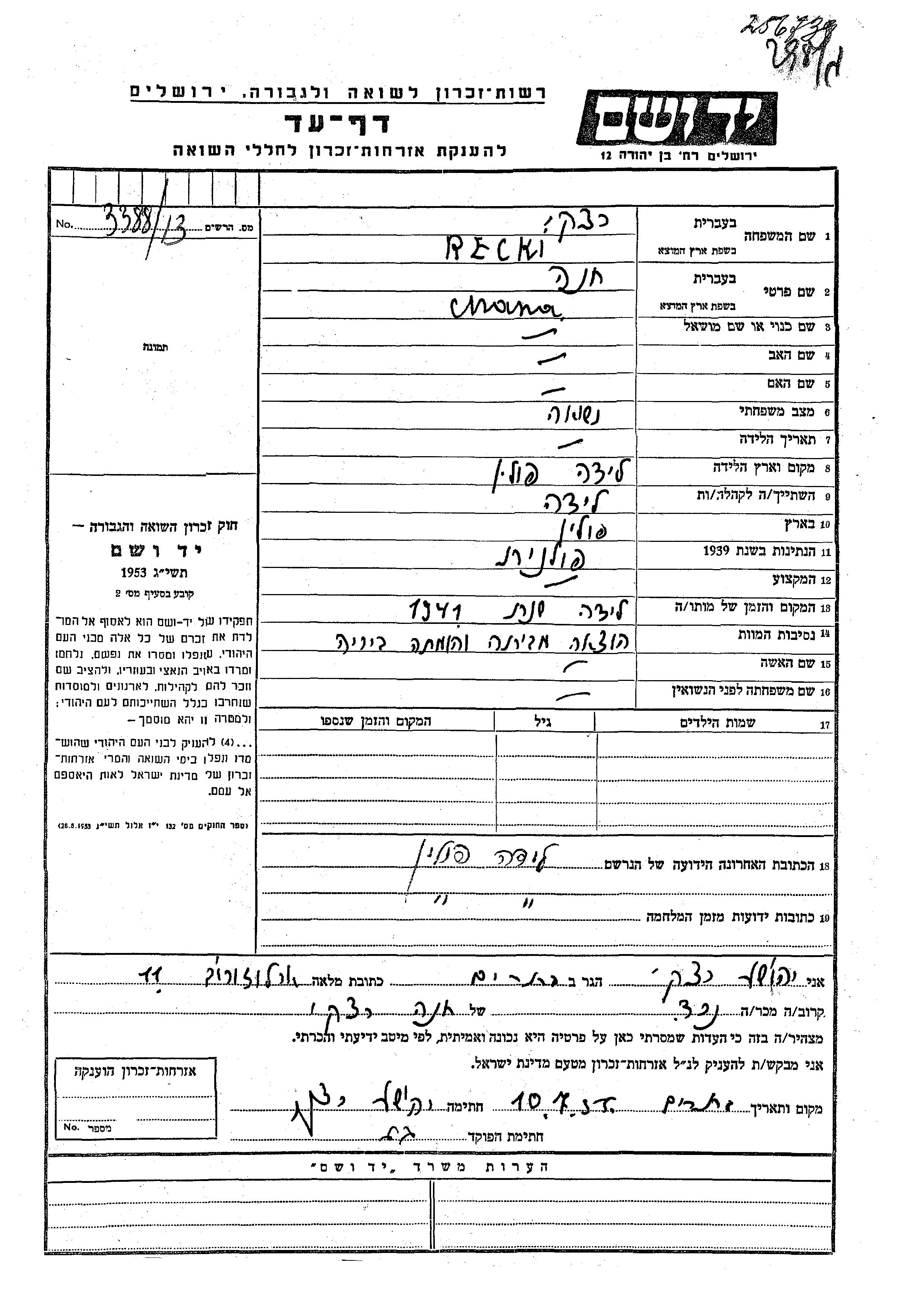 Yad Vashem - Pages of Testimony Names Memorial Collection