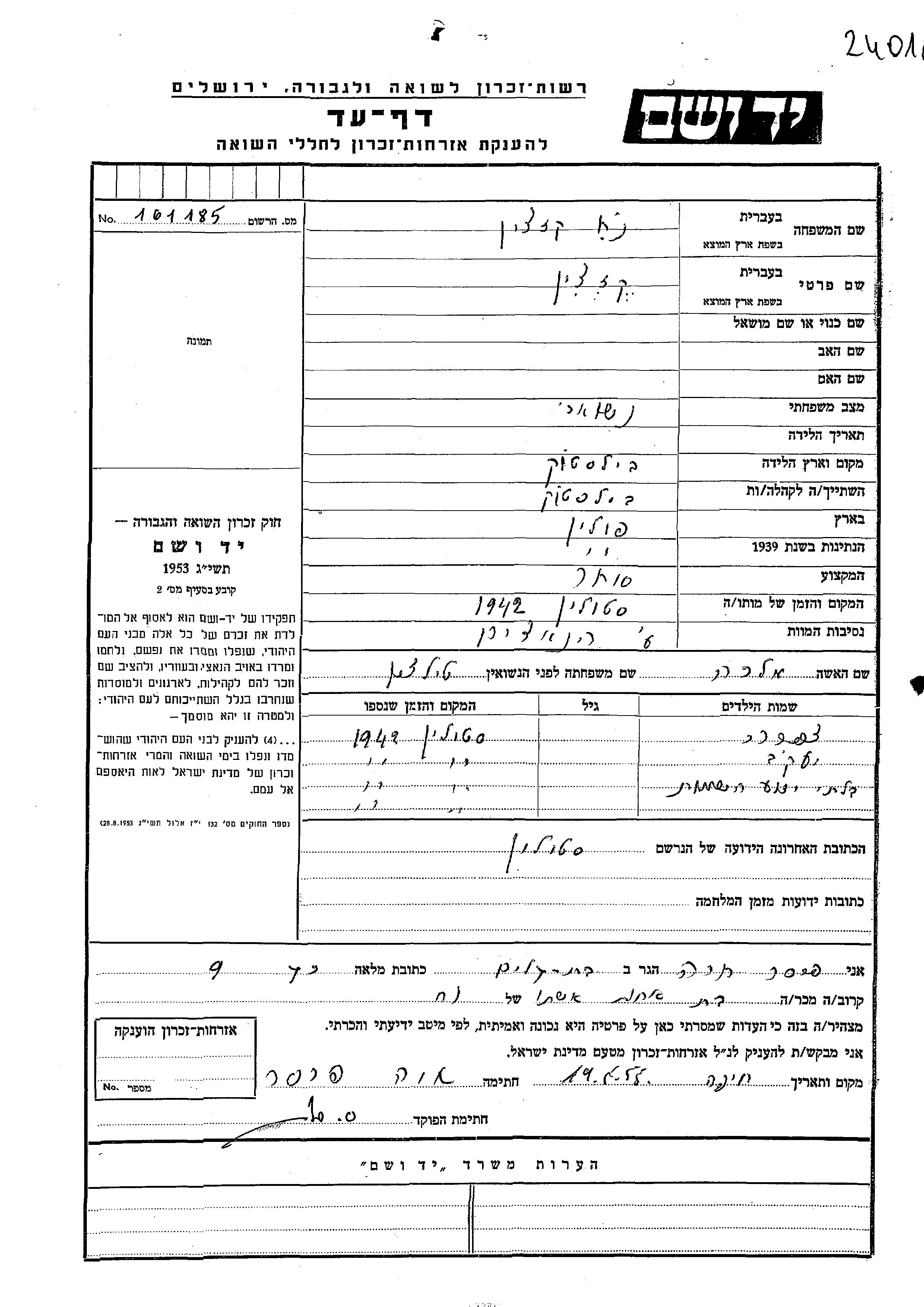 Yad Vashem - Pages of Testimony Names Memorial Collection
