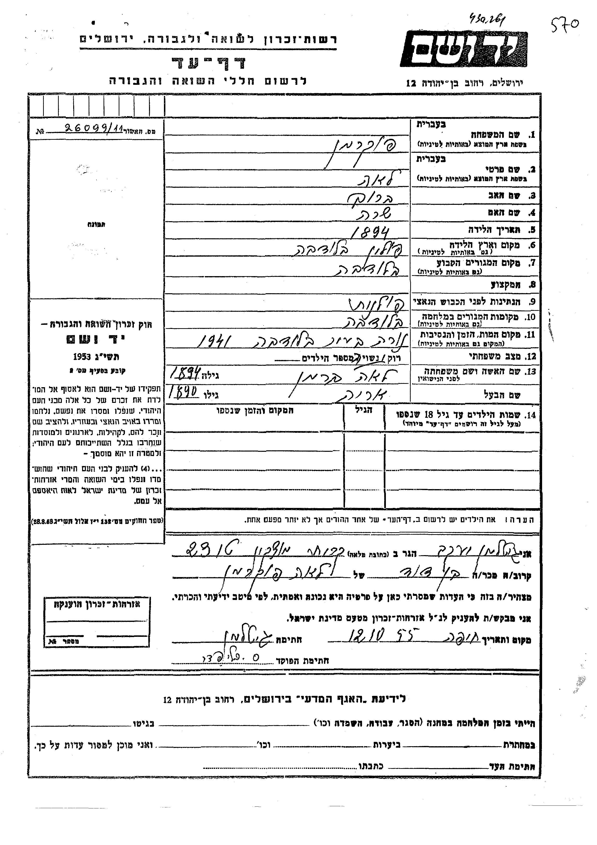 Yad Vashem - Pages of Testimony Names Memorial Collection