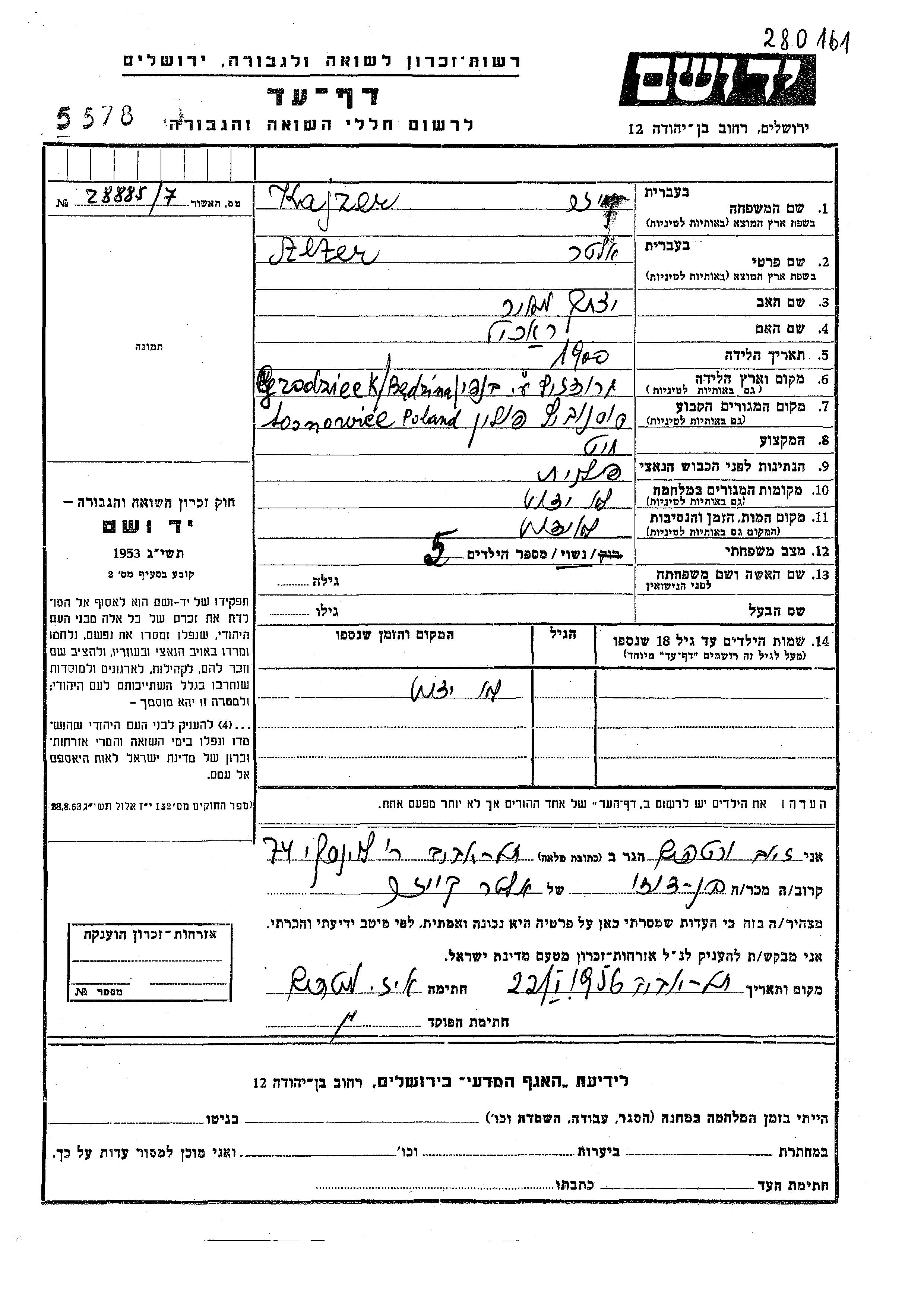 Yad Vashem - Pages of Testimony Names Memorial Collection