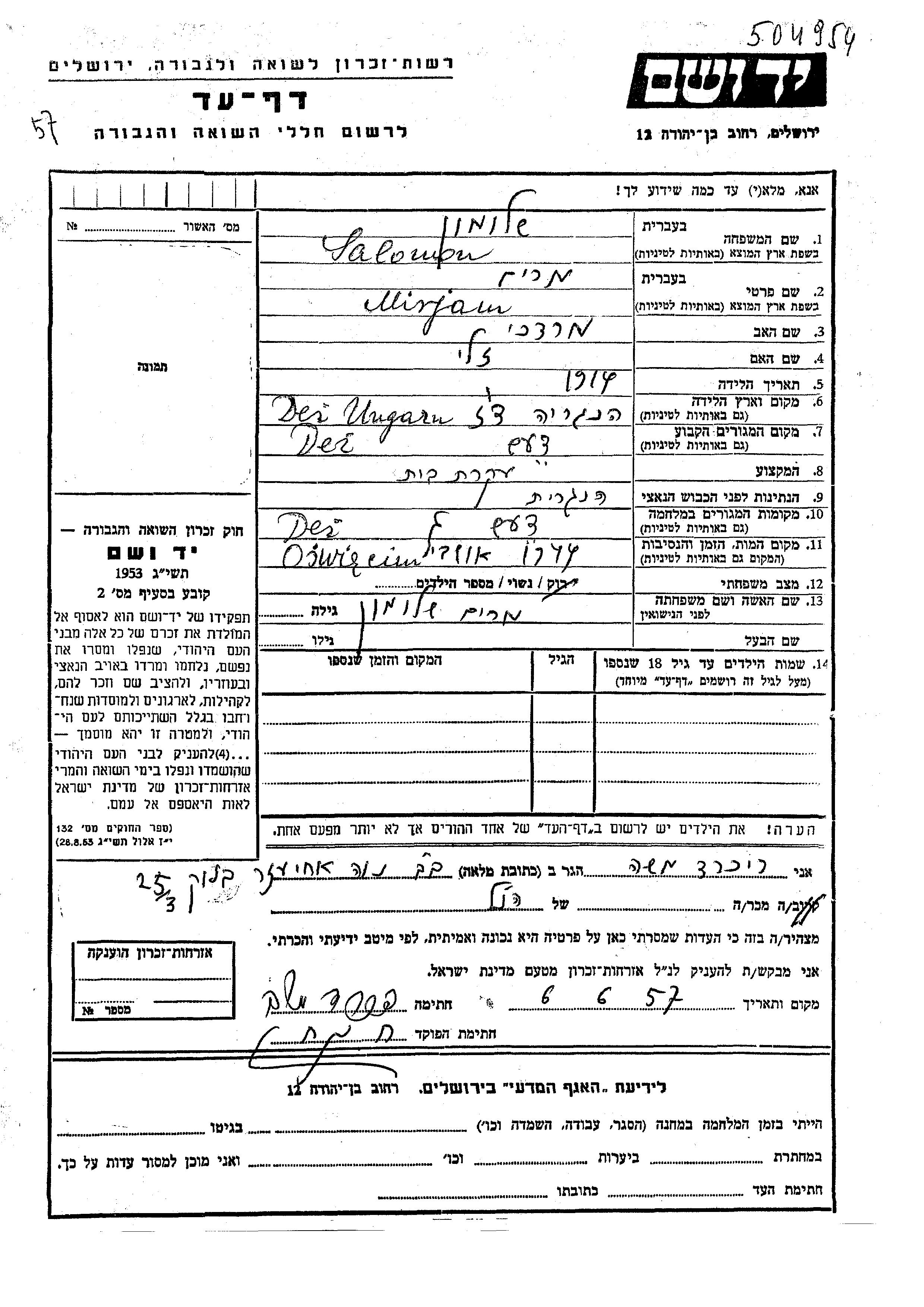 Yad Vashem - Pages of Testimony Names Memorial Collection