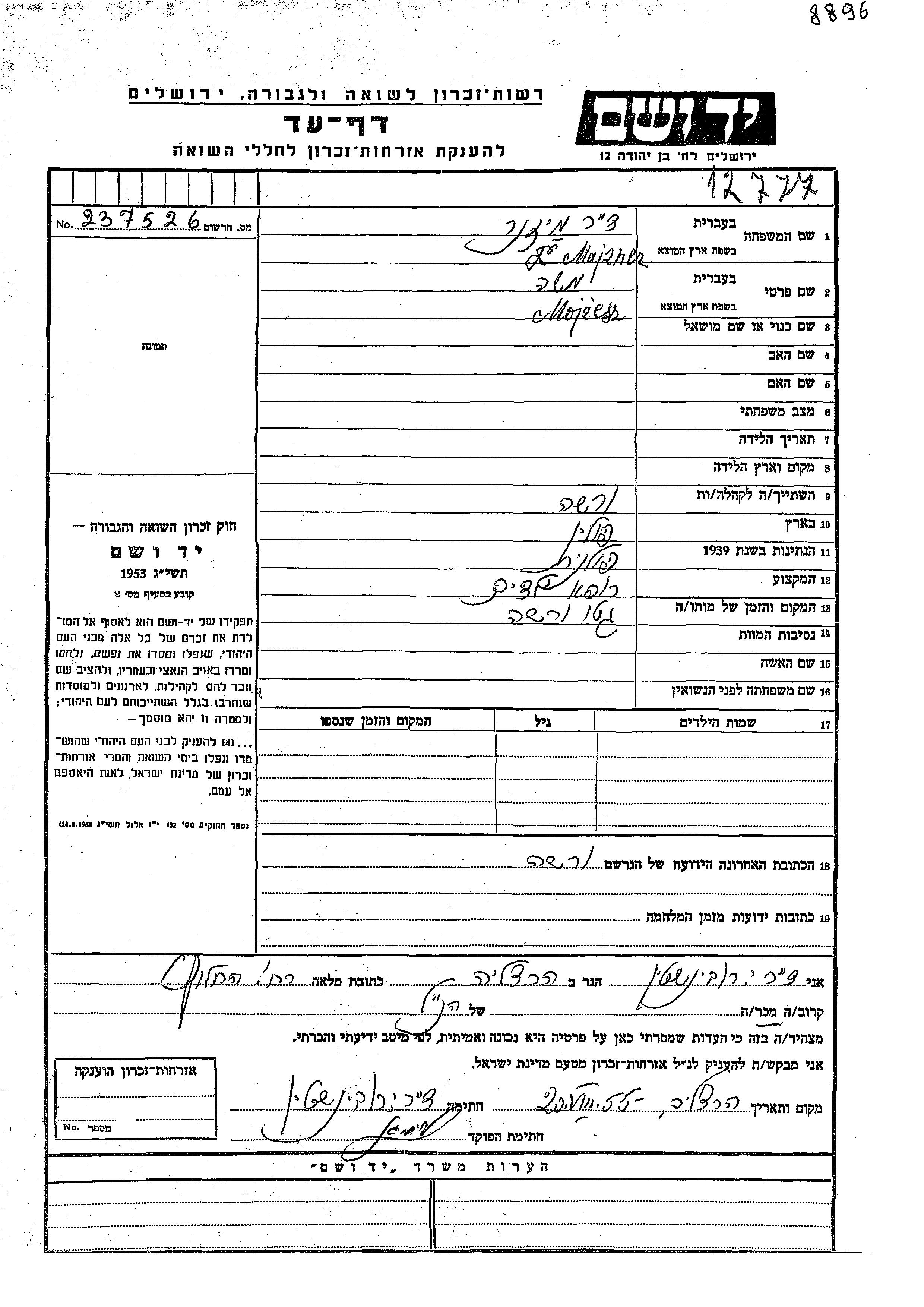 Recherche par lieu de résidence permanente avant la Shoah, ville, village, département, région ou pays.
