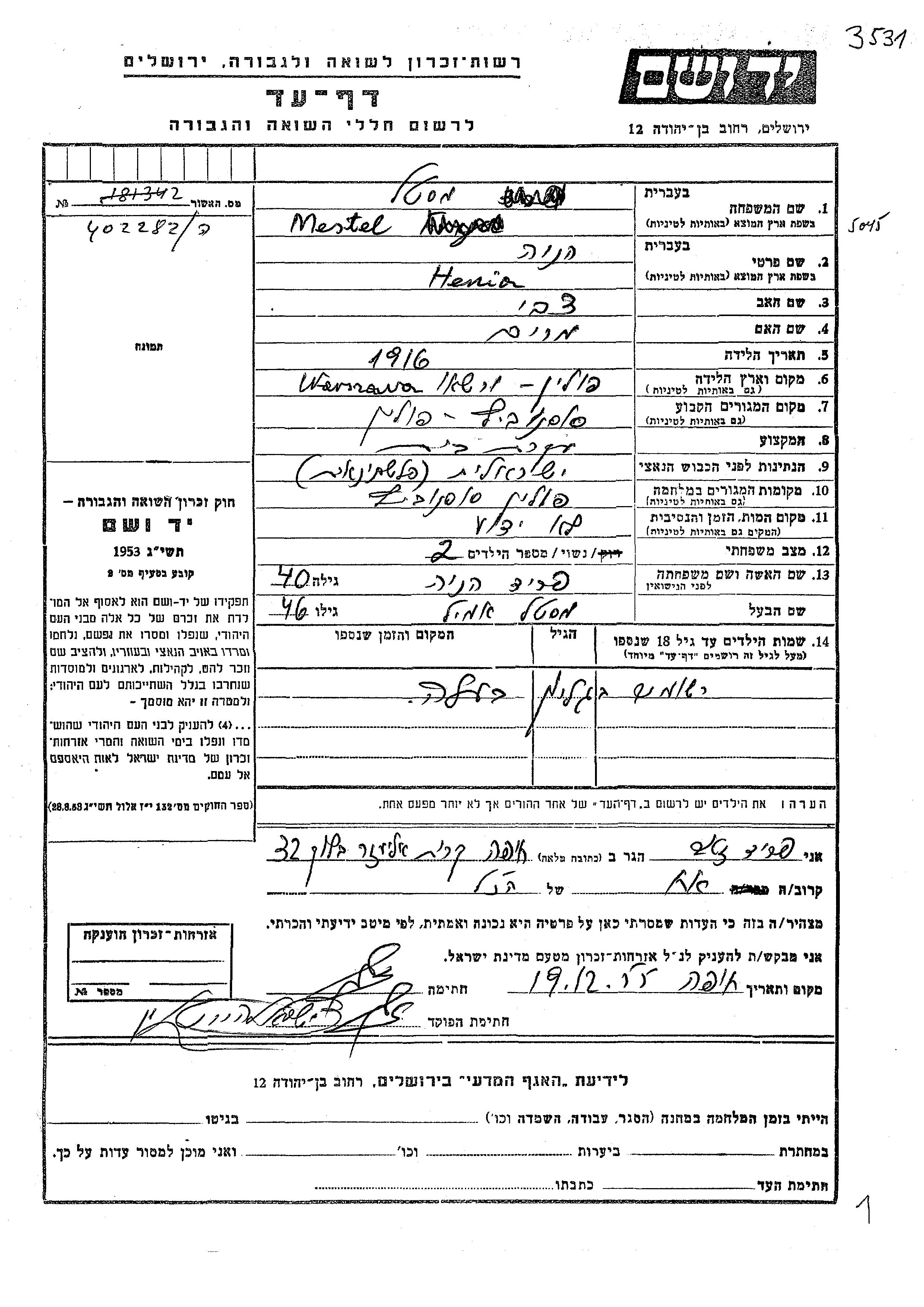 Yad Vashem - Pages of Testimony Names Memorial Collection