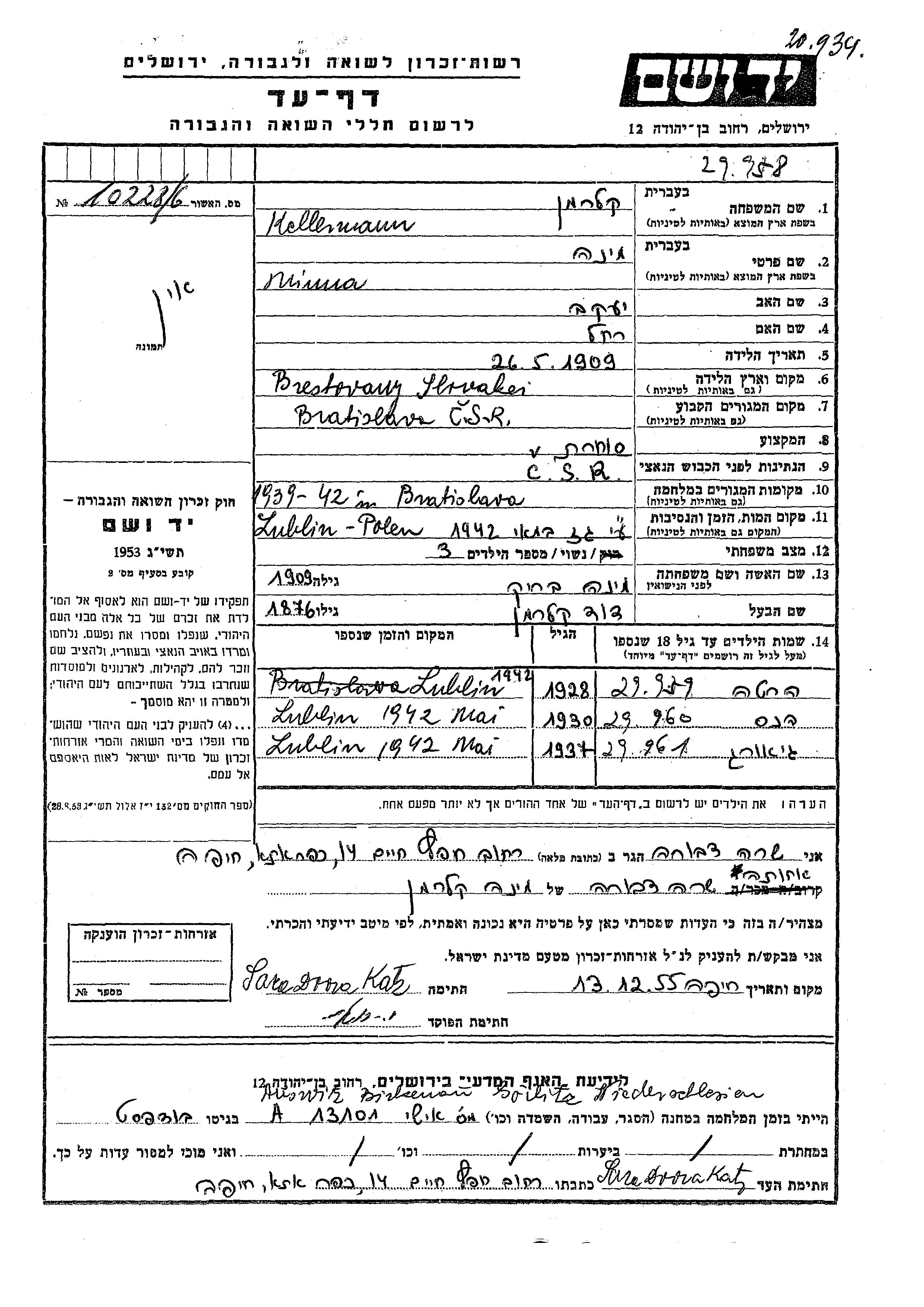 Yad Vashem - Pages of Testimony Names Memorial Collection