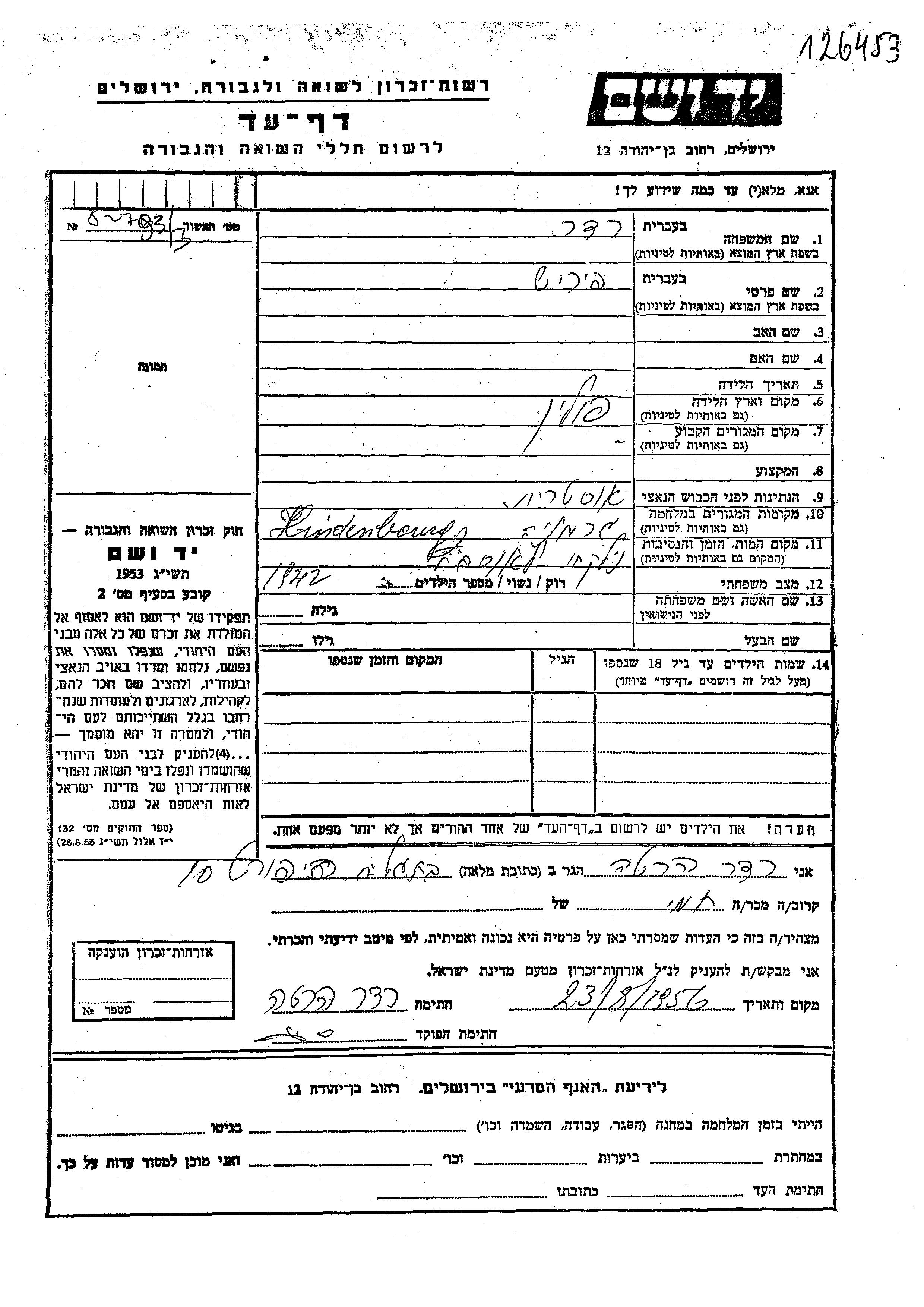 Yad Vashem - Pages of Testimony Names Memorial Collection