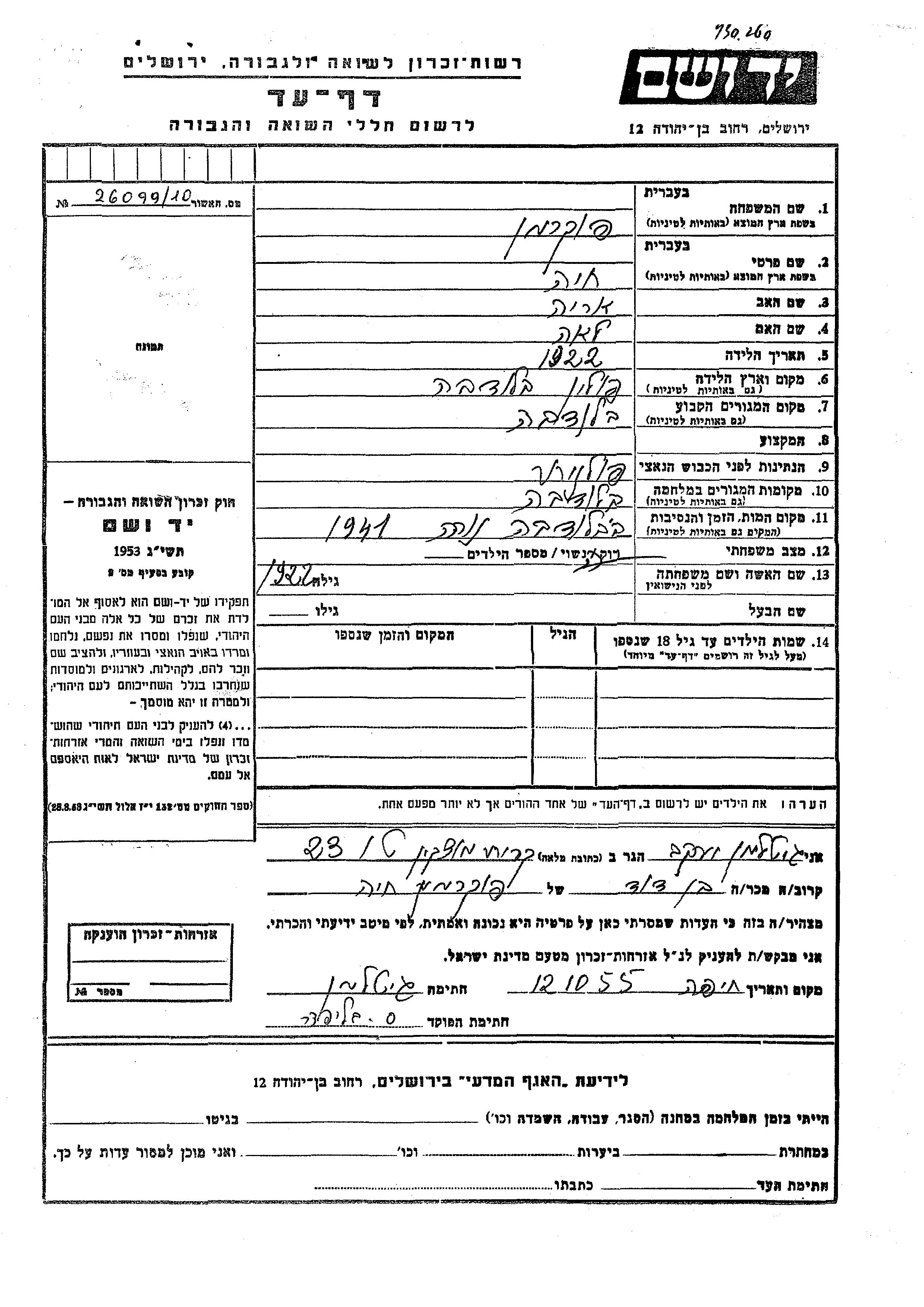 Yad Vashem - Pages of Testimony Names Memorial Collection