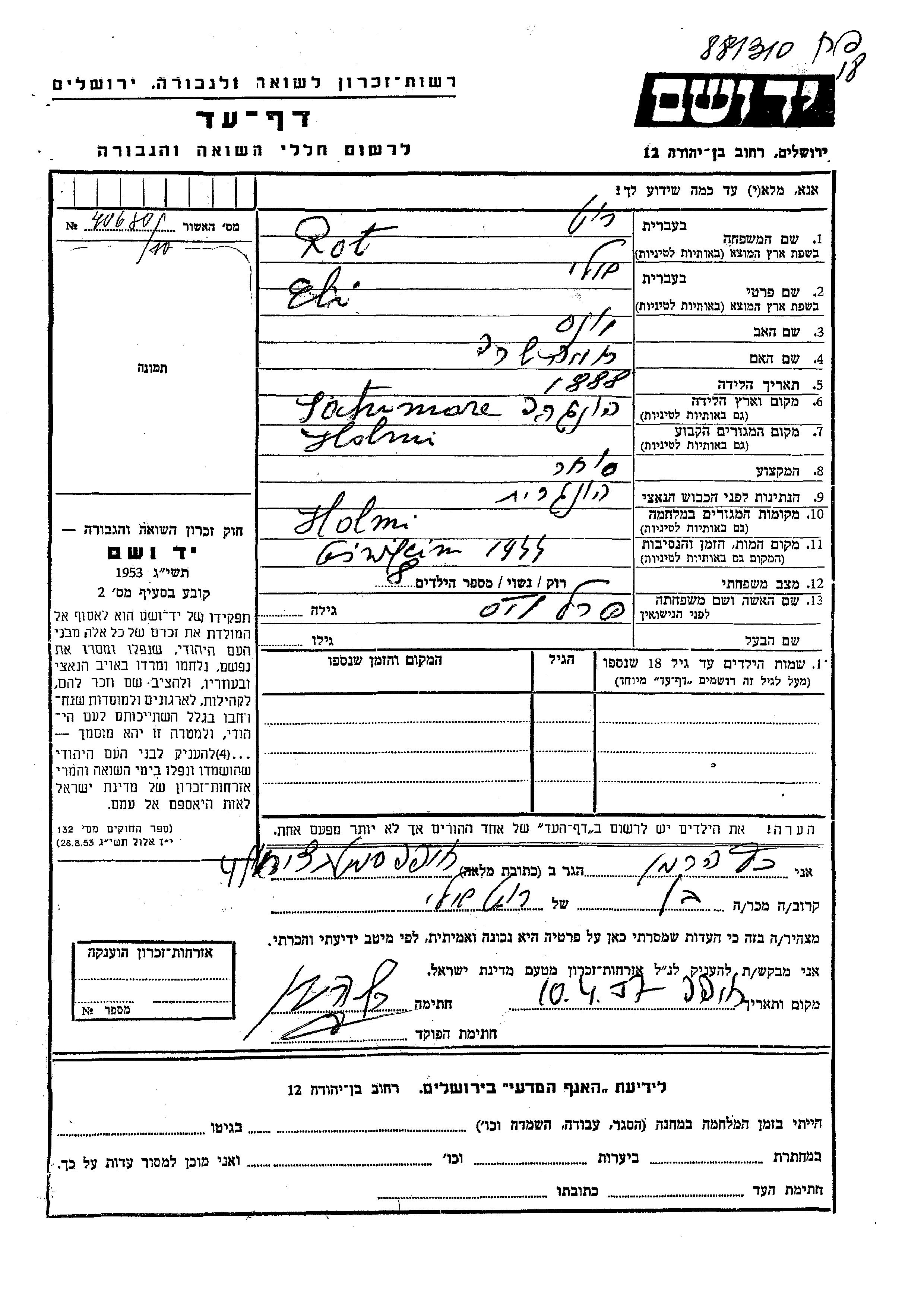 Yad Vashem - Pages of Testimony Names Memorial Collection