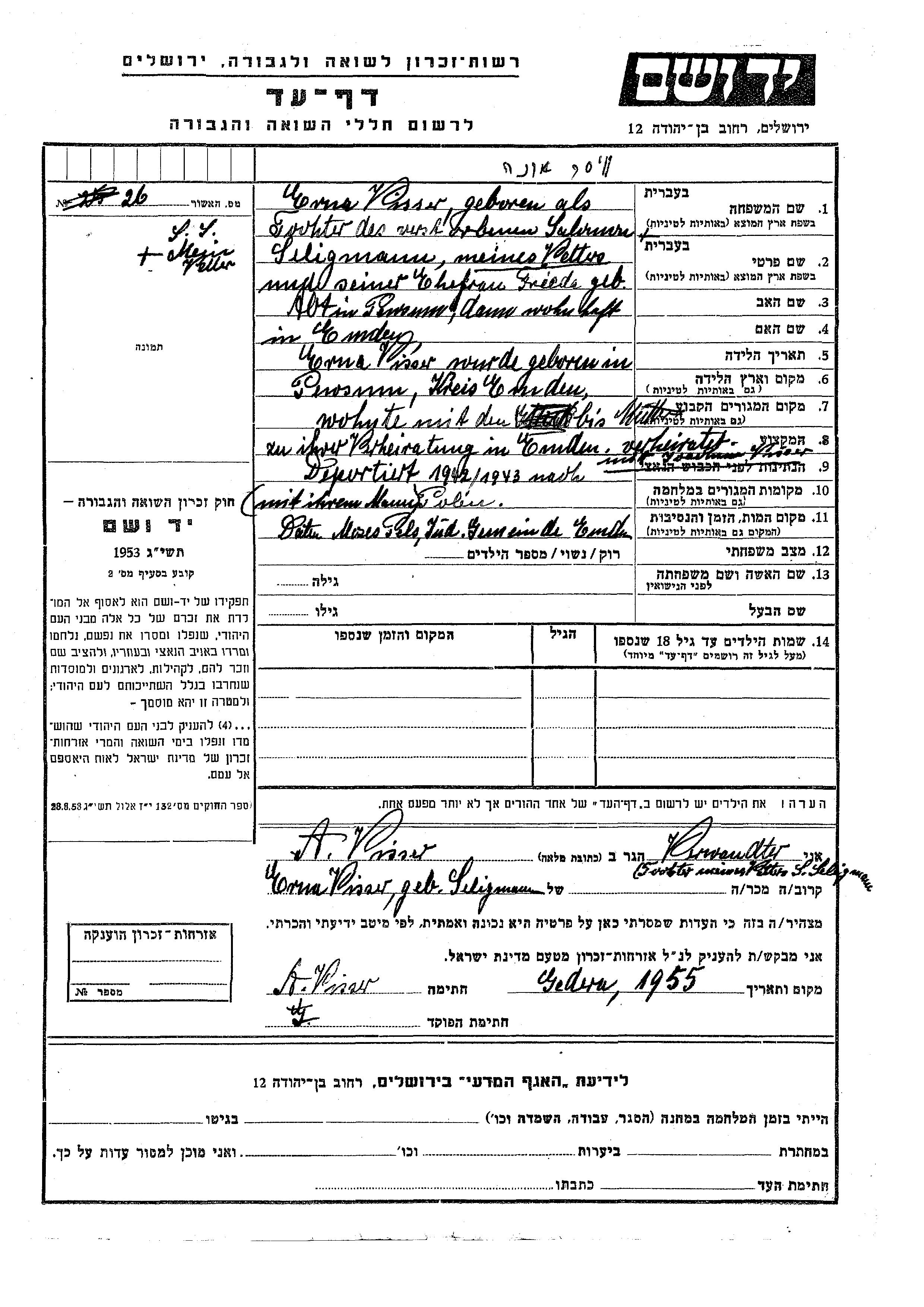Yad Vashem - Pages of Testimony Names Memorial Collection