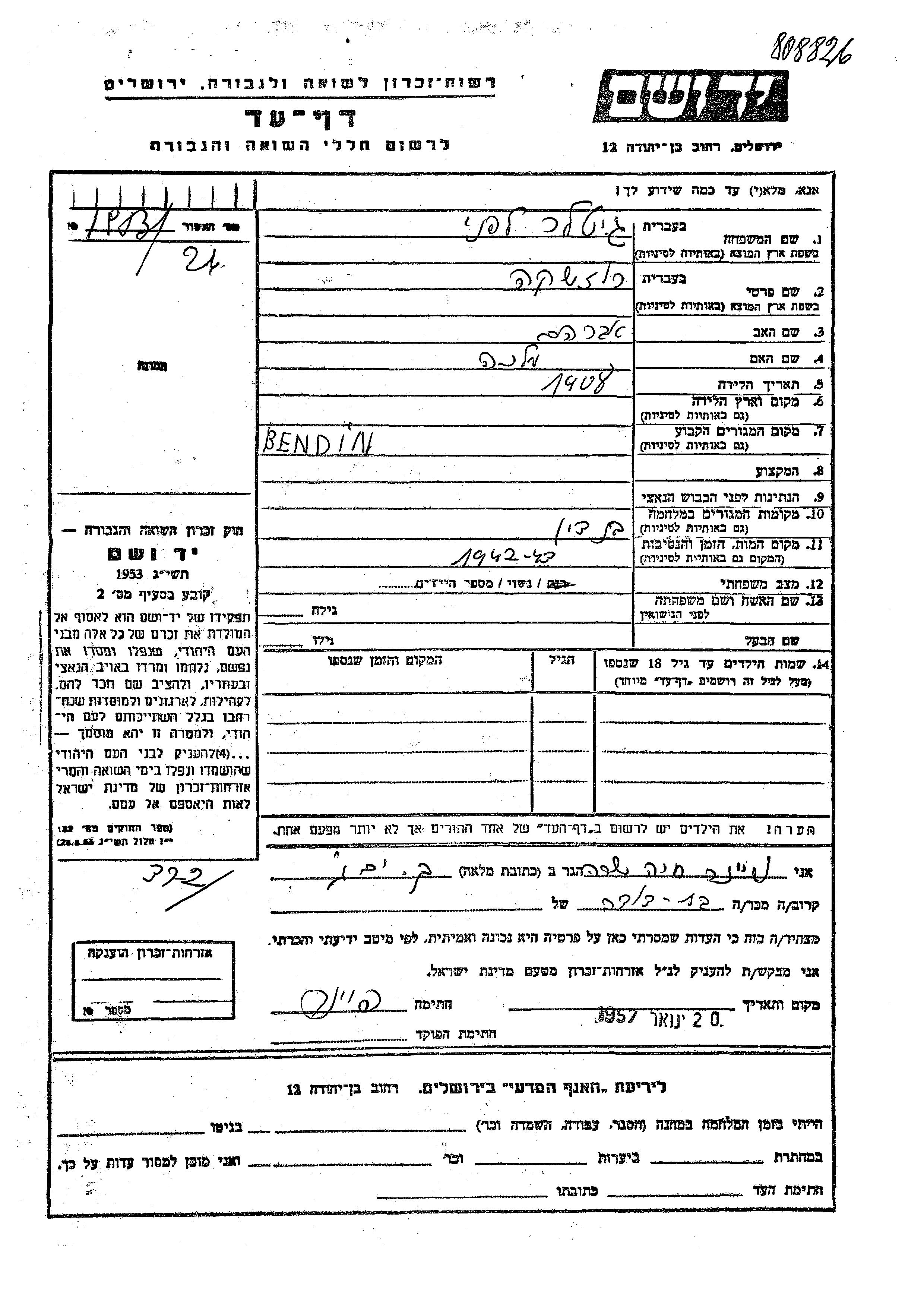 nom inconnu Rozeshka 1908 Bendin, Pologne Feuille de témoignage