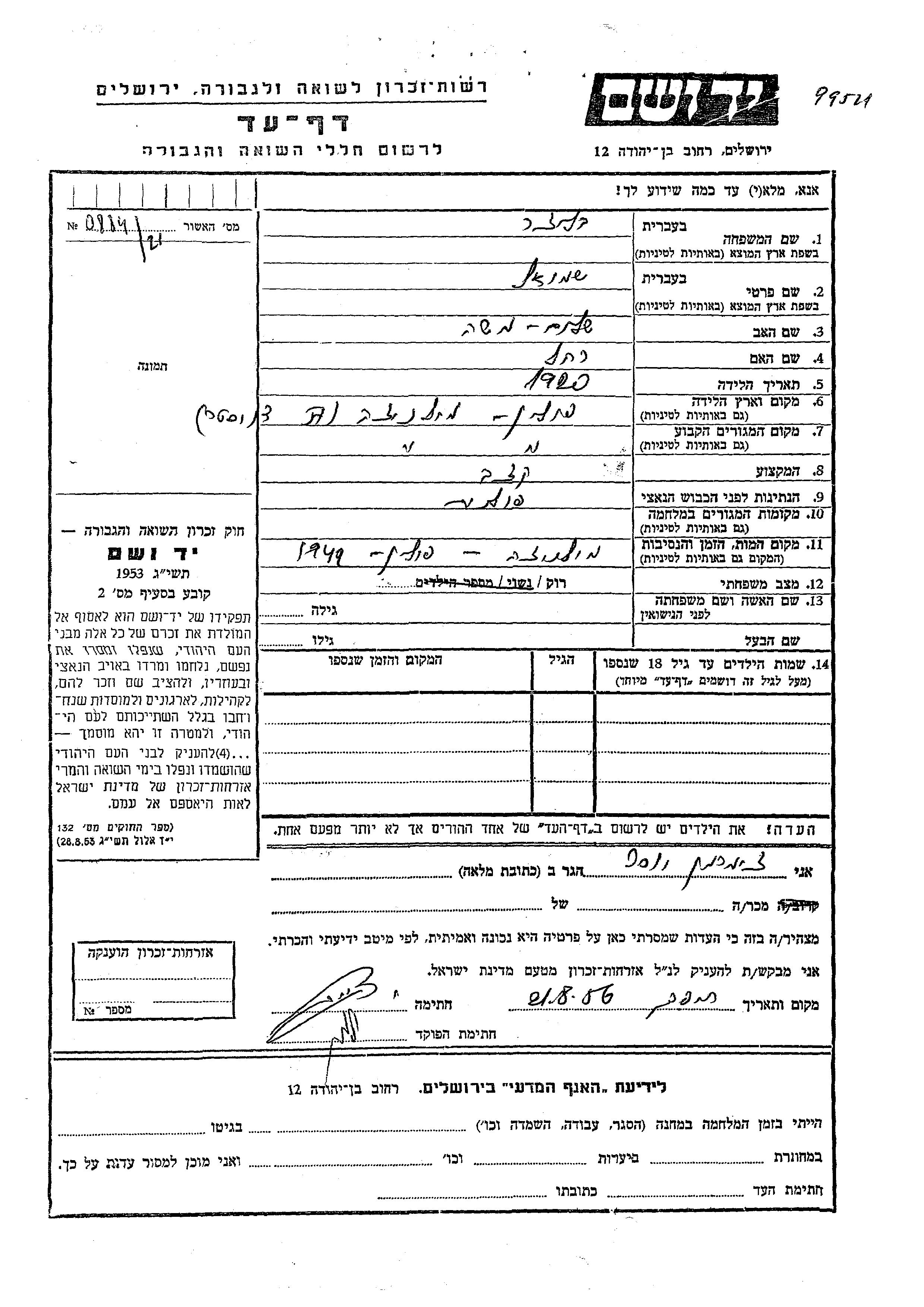 Yad Vashem - Pages of Testimony Names Memorial Collection