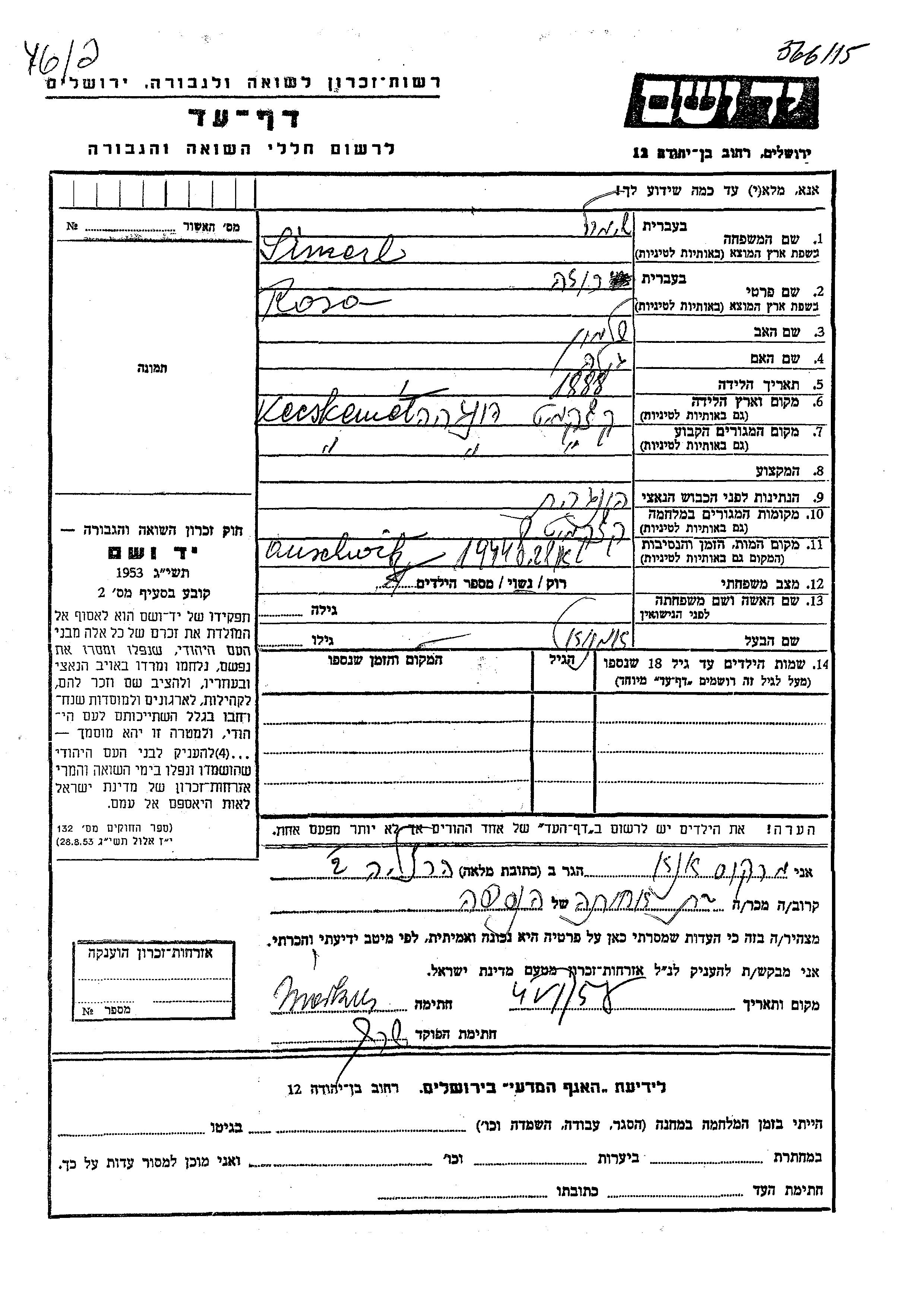 Yad Vashem - Pages of Testimony Names Memorial Collection