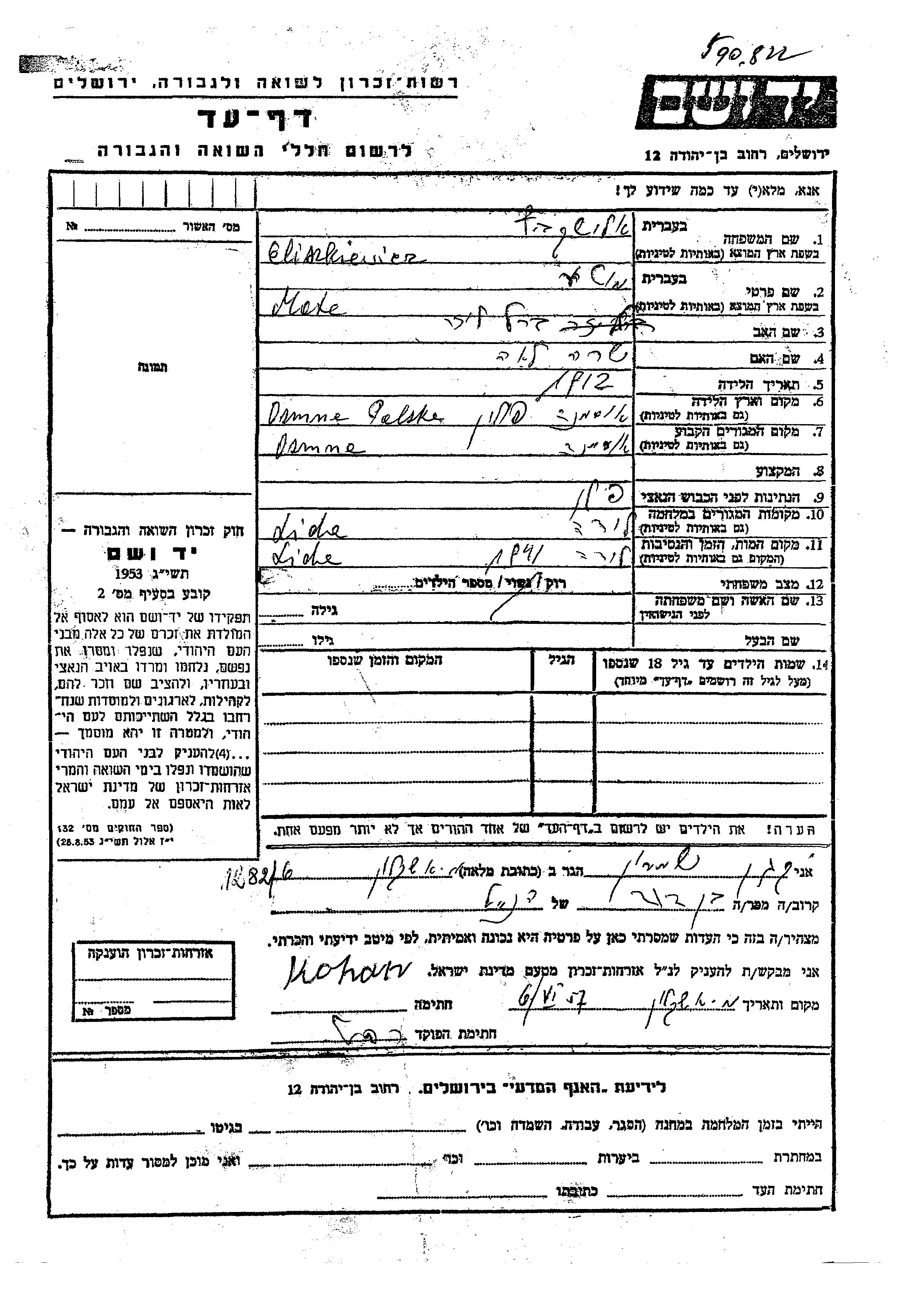 Yad Vashem - Pages of Testimony Names Memorial Collection