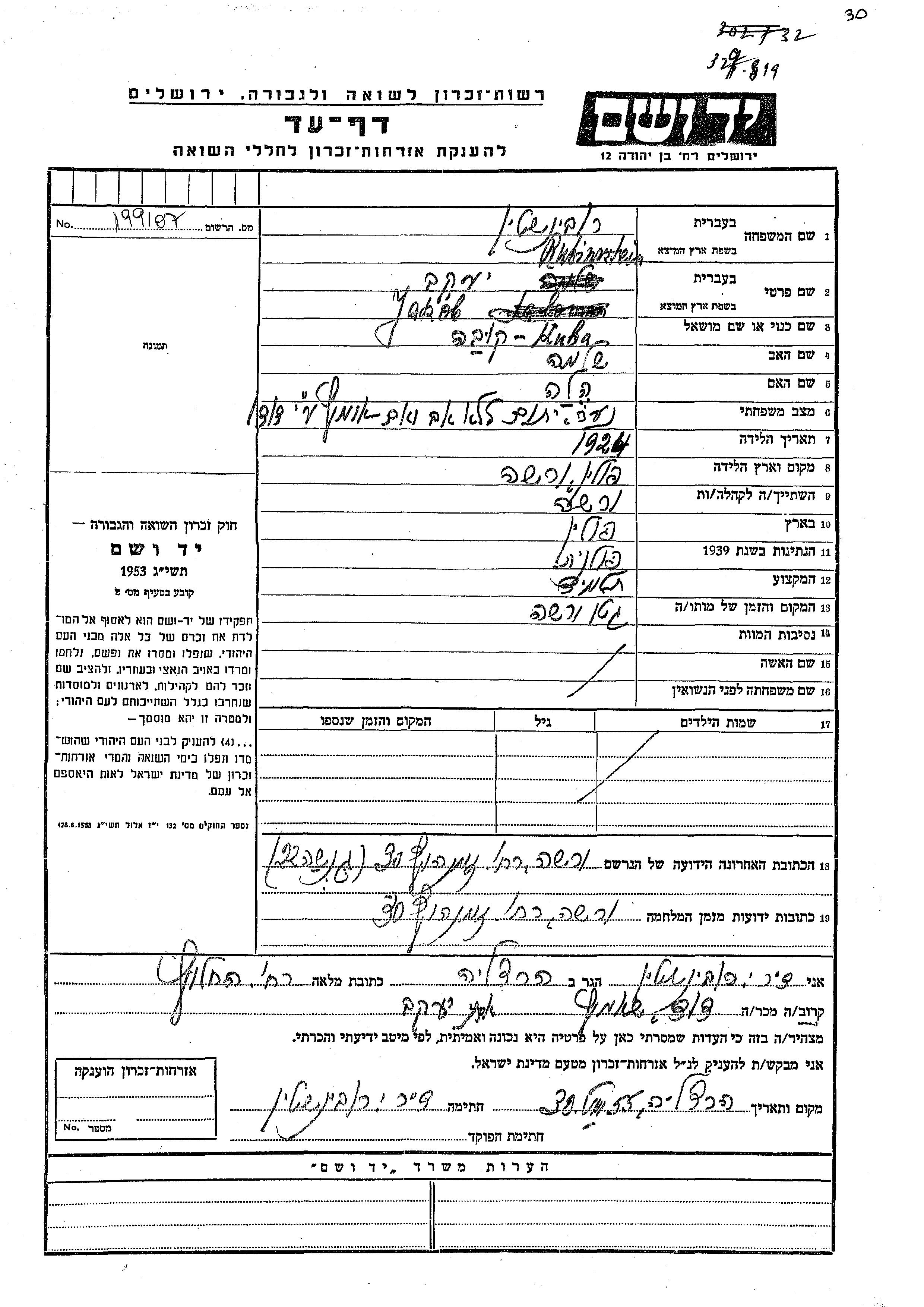 Yad Vashem - Pages of Testimony Names Memorial Collection