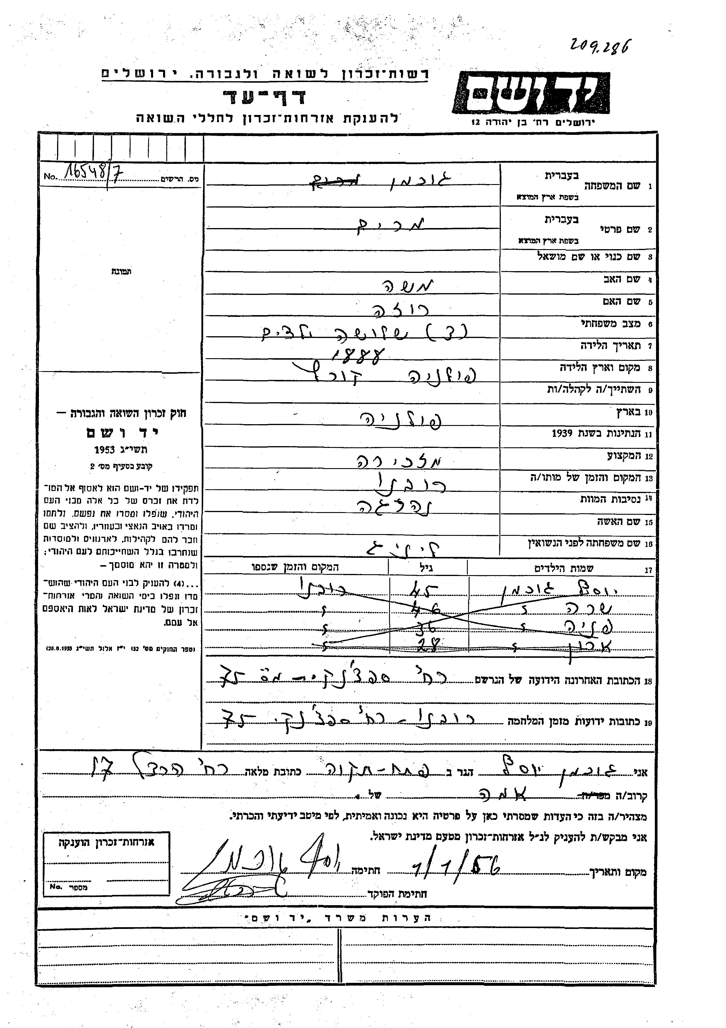 Yad Vashem - Pages of Testimony Names Memorial Collection