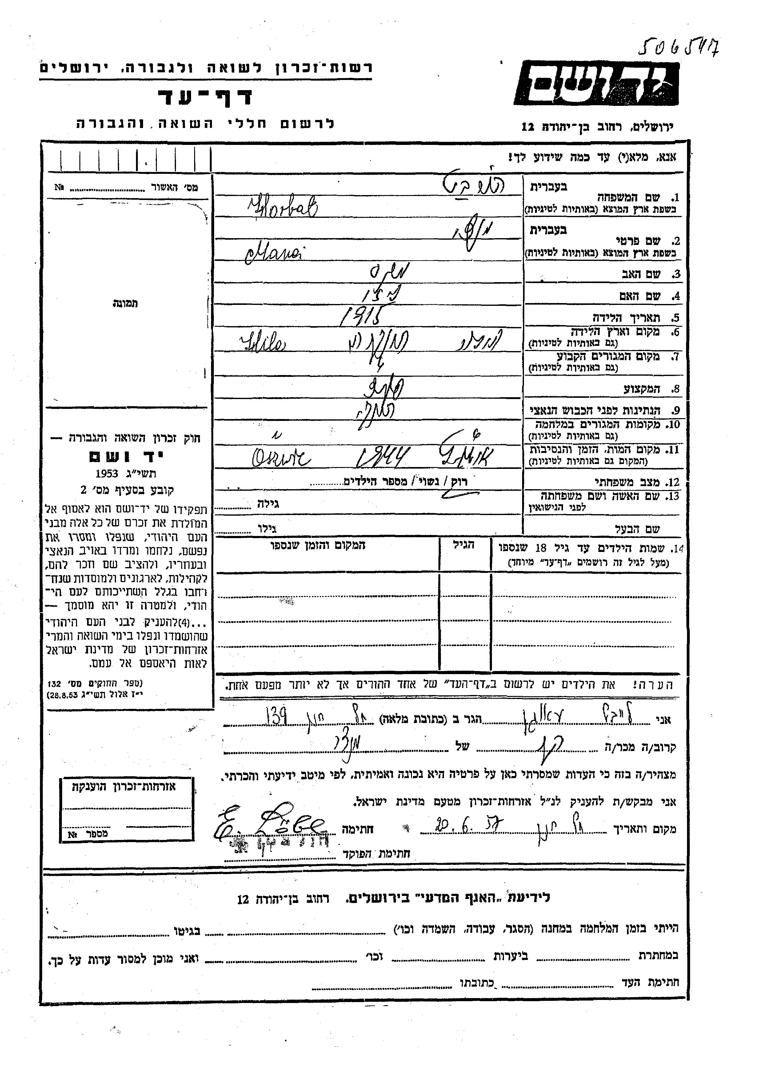Yad Vashem - Pages of Testimony Names Memorial Collection