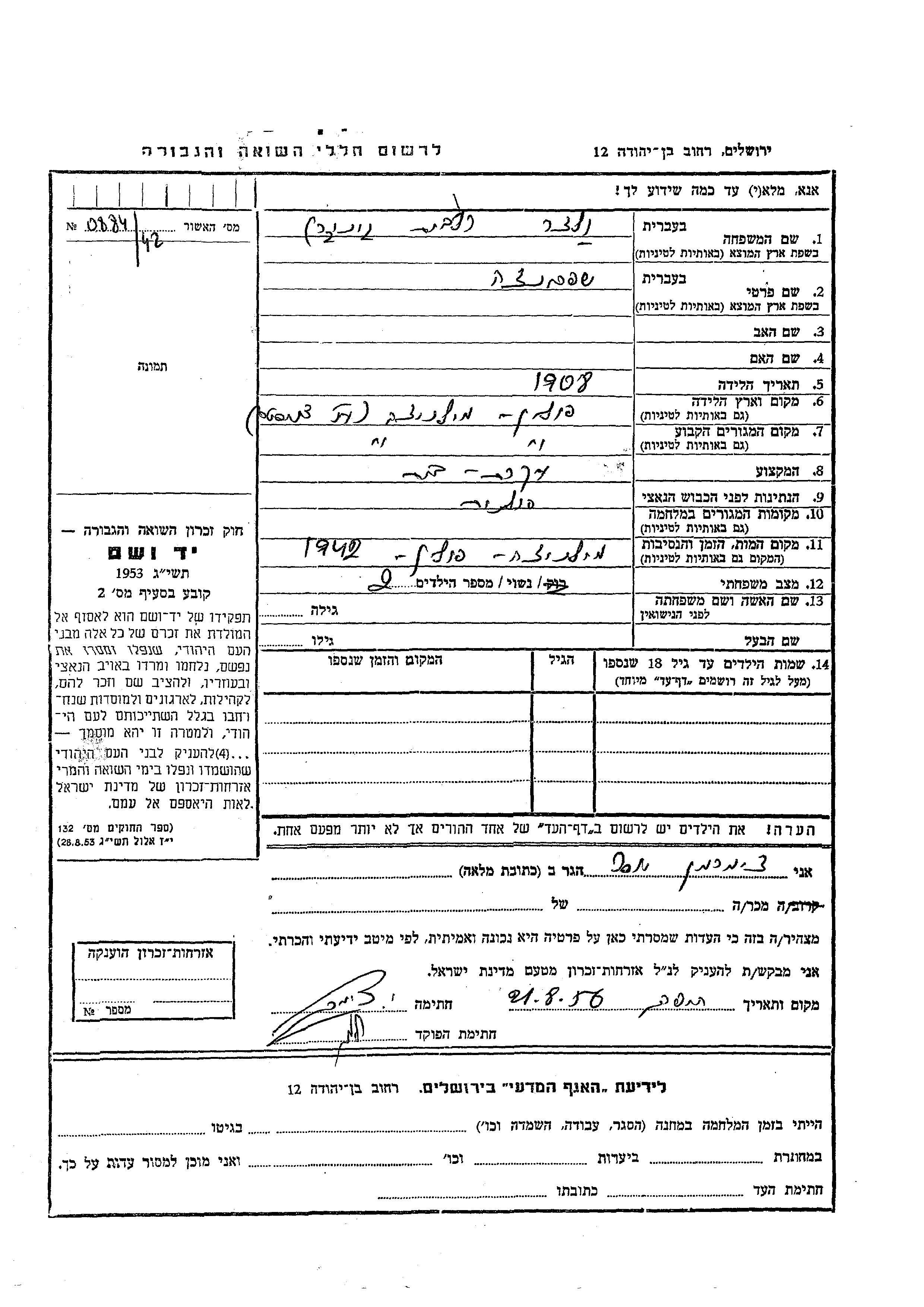 Yad Vashem - Pages of Testimony Names Memorial Collection