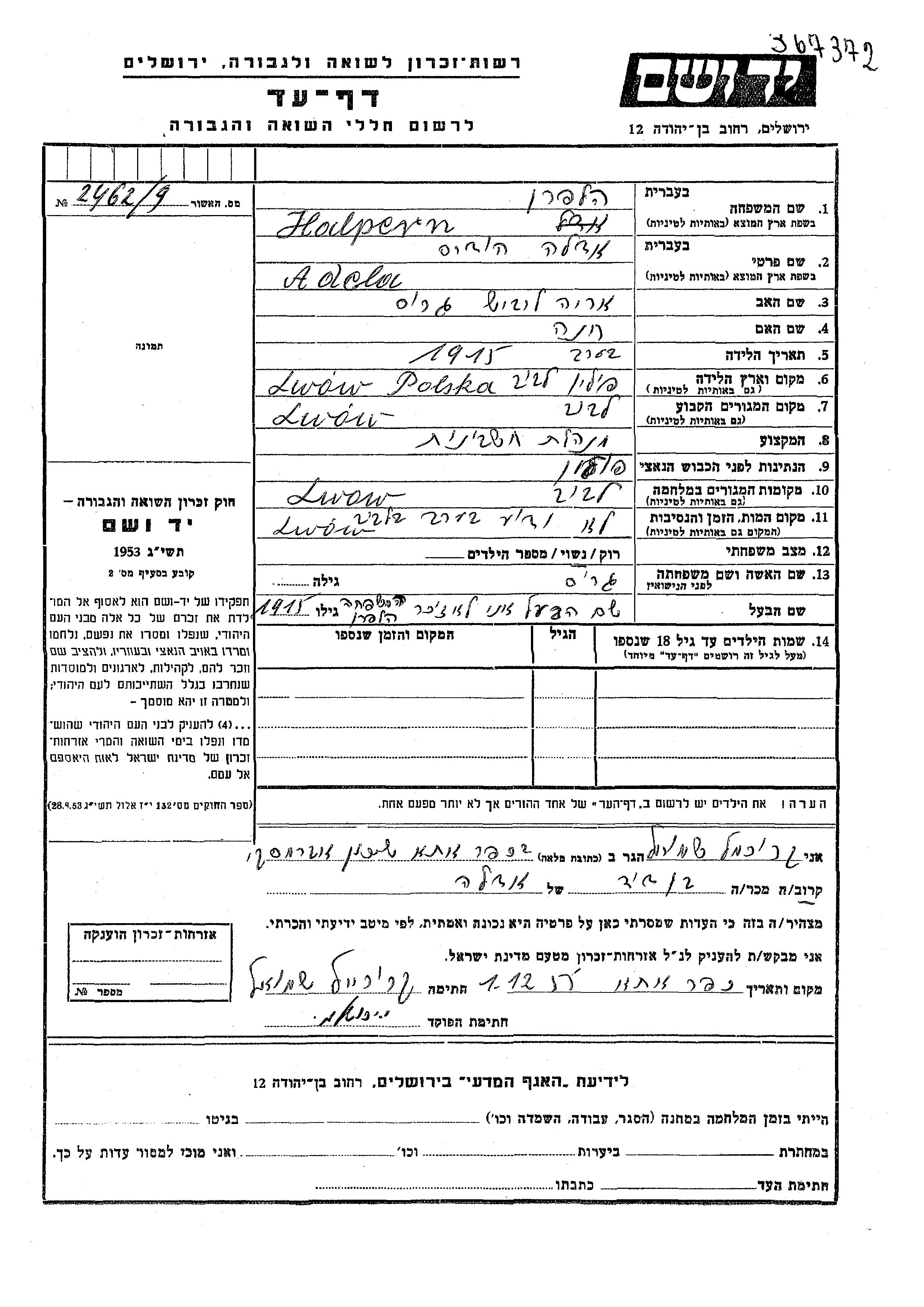 Recherche par lieu de résidence permanente avant la Shoah, ville, village, département, région ou pays.