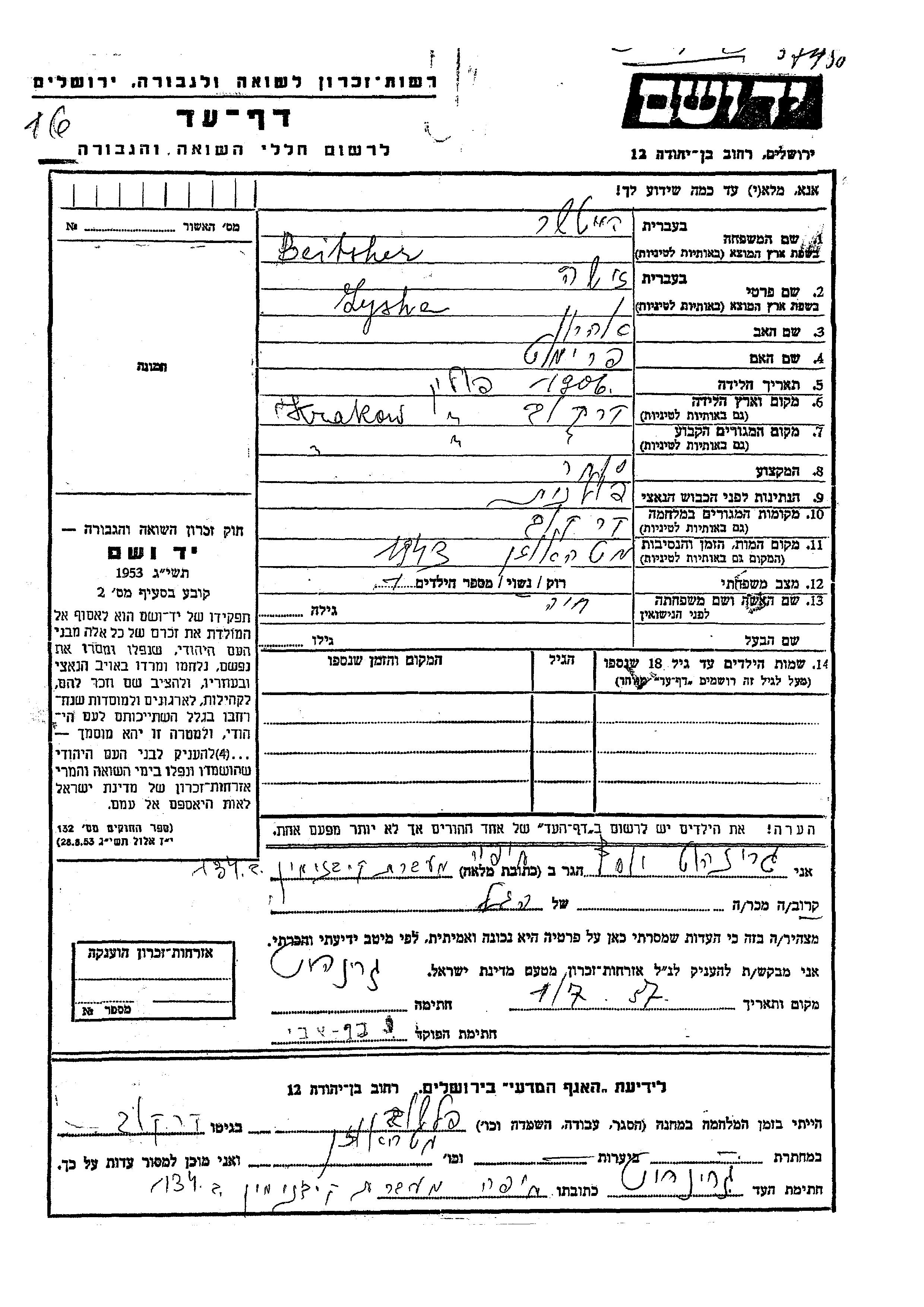 Yad Vashem - Pages of Testimony Names Memorial Collection
