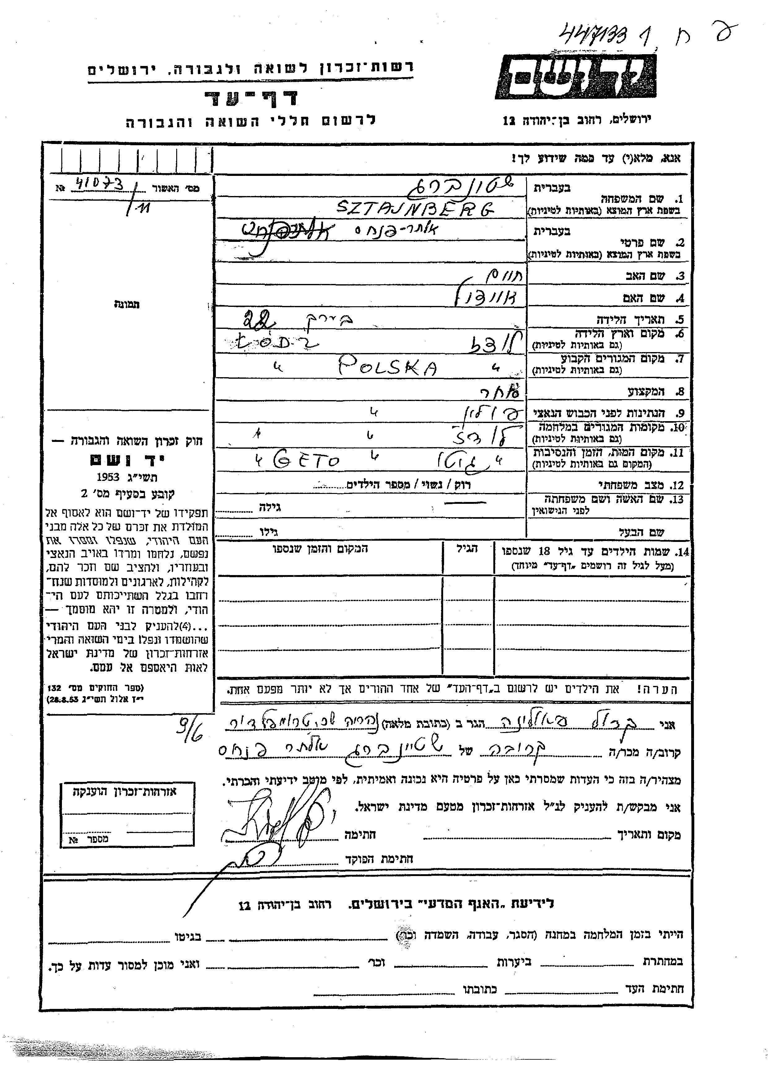 Yad Vashem - Pages of Testimony Names Memorial Collection