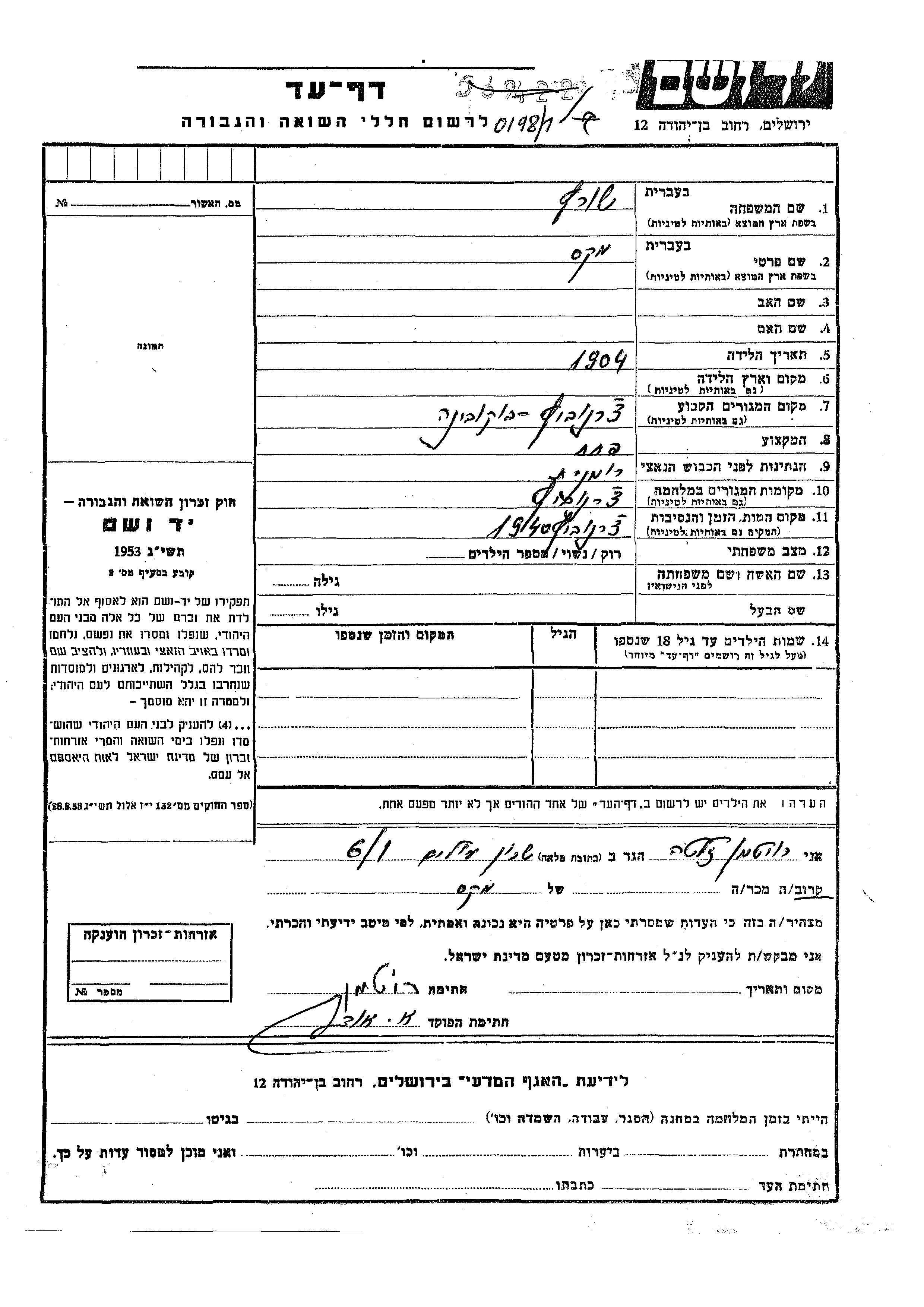 Yad Vashem - Pages of Testimony Names Memorial Collection