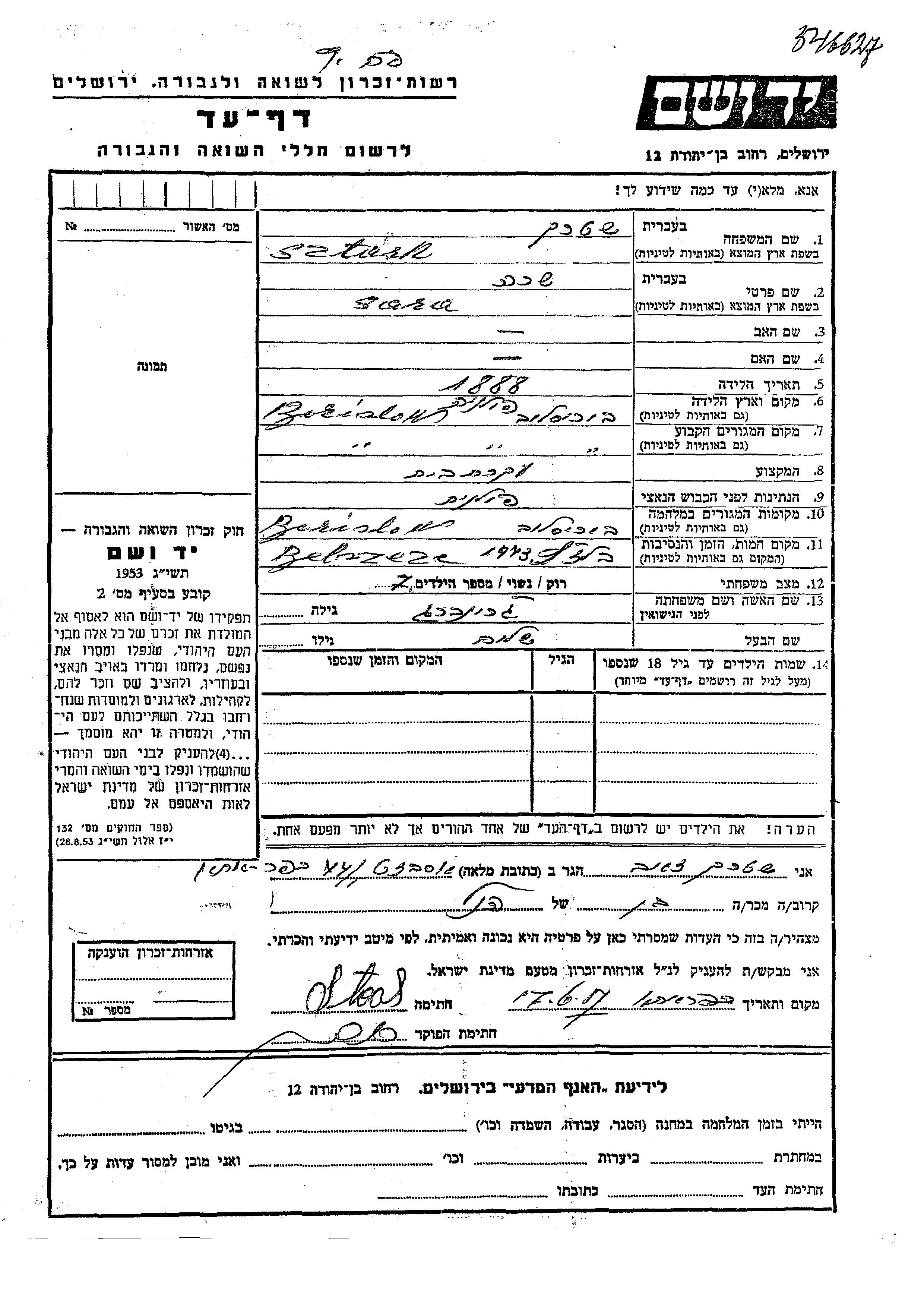 Yad Vashem - Pages of Testimony Names Memorial Collection