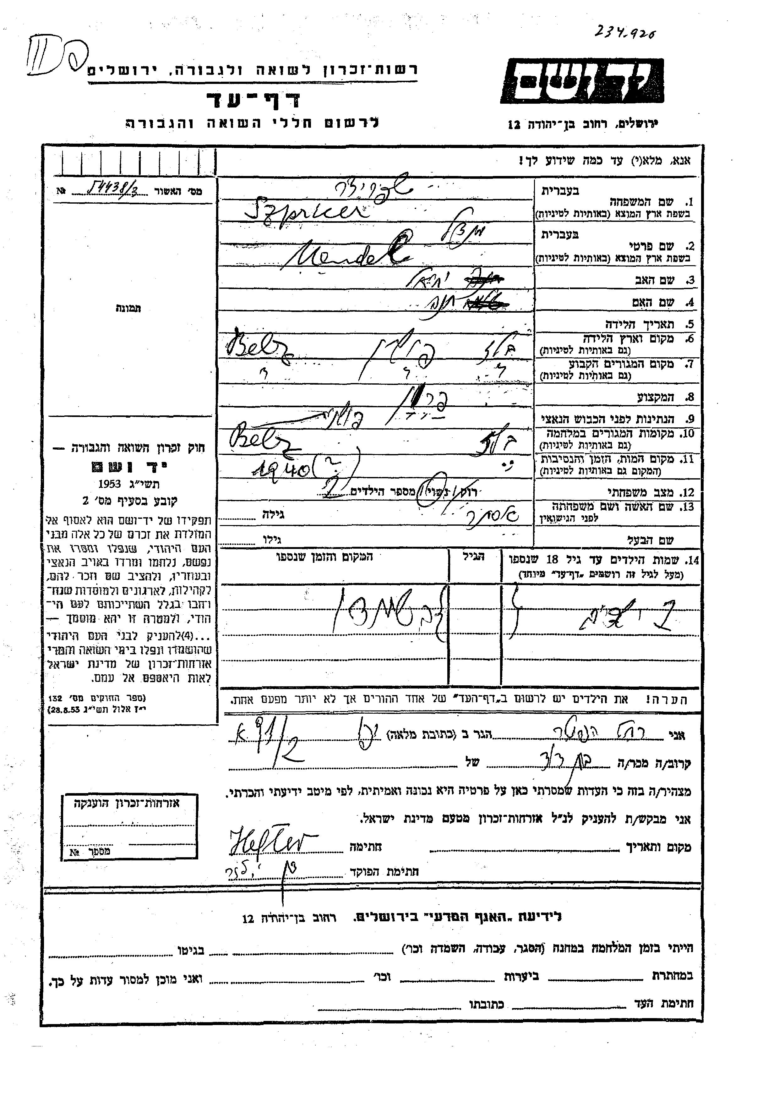 Yad Vashem - Pages of Testimony Names Memorial Collection