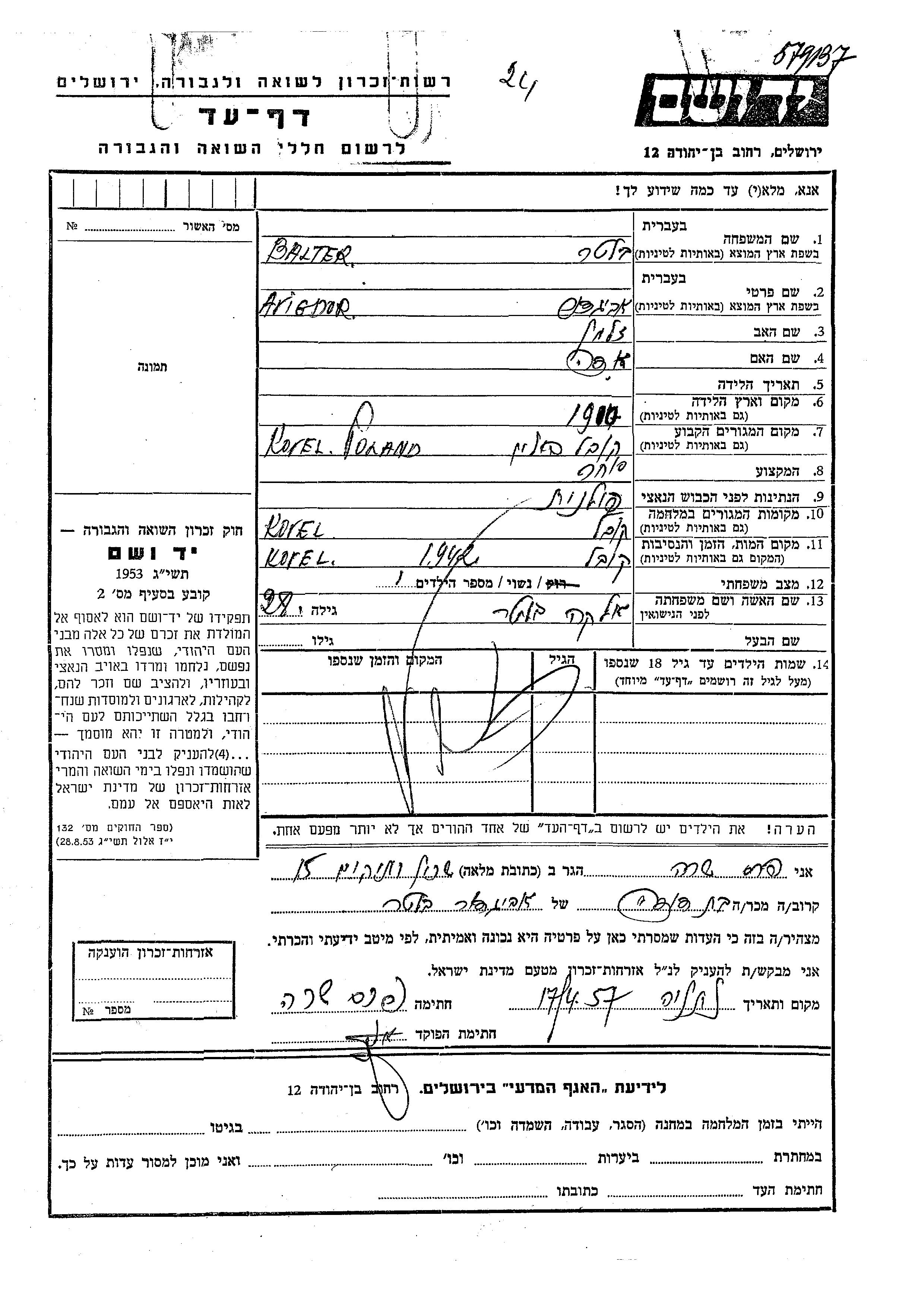 Yad Vashem - Pages of Testimony Names Memorial Collection