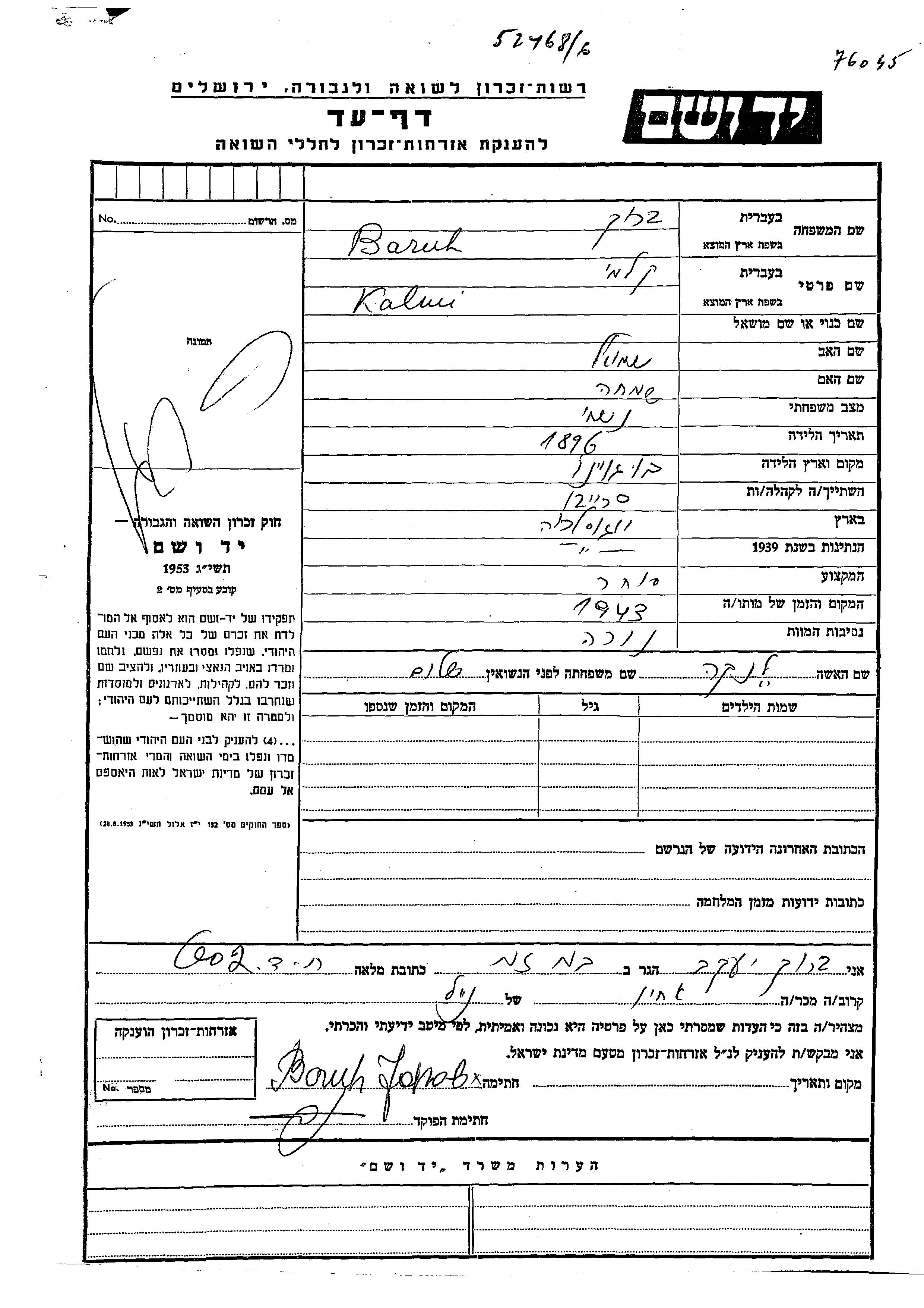 Kalmi a été assassiné pendant la Shoah. Lieu de la mort: endroit inconnu en 1943.