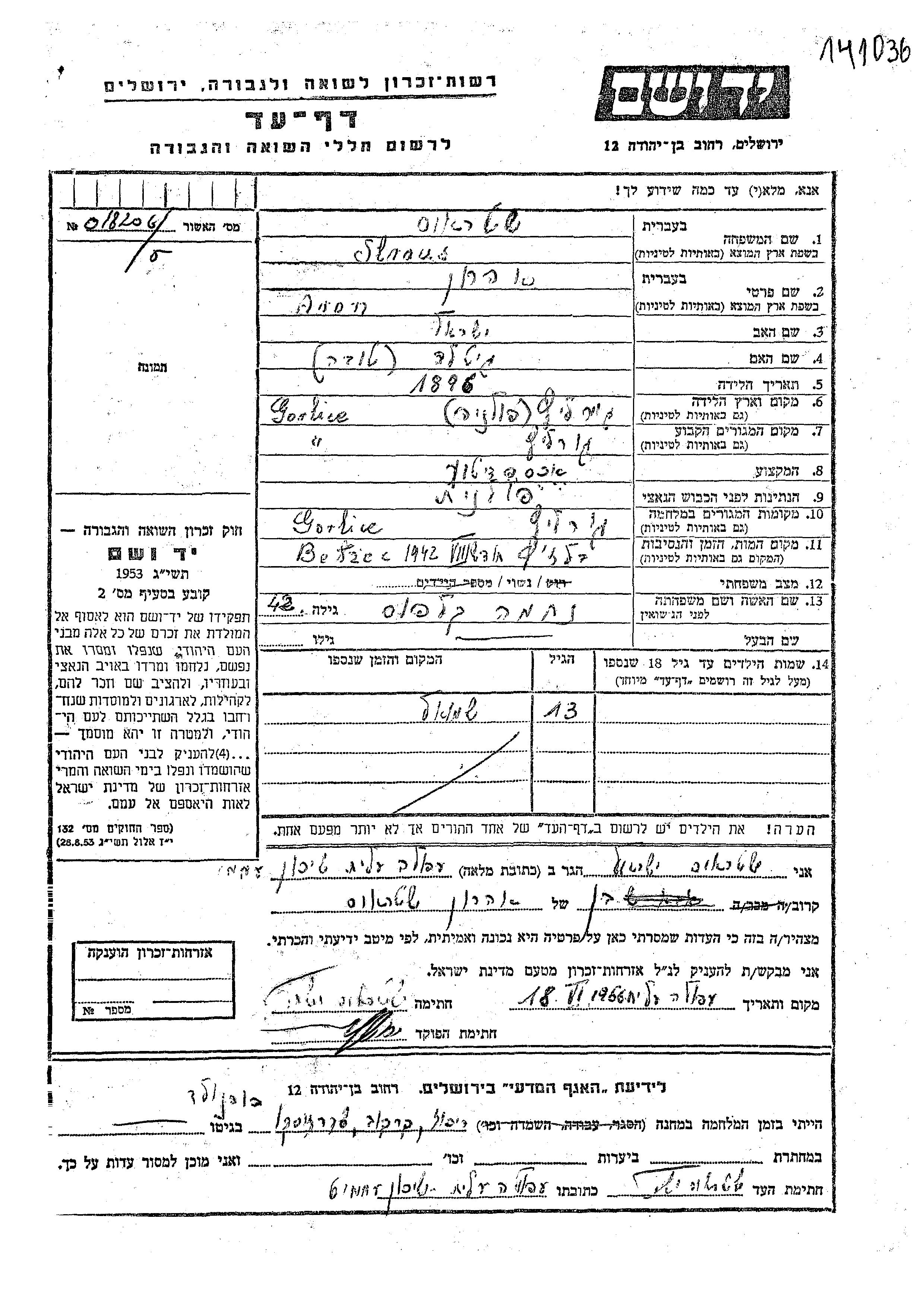 Yad Vashem - Pages of Testimony Names Memorial Collection