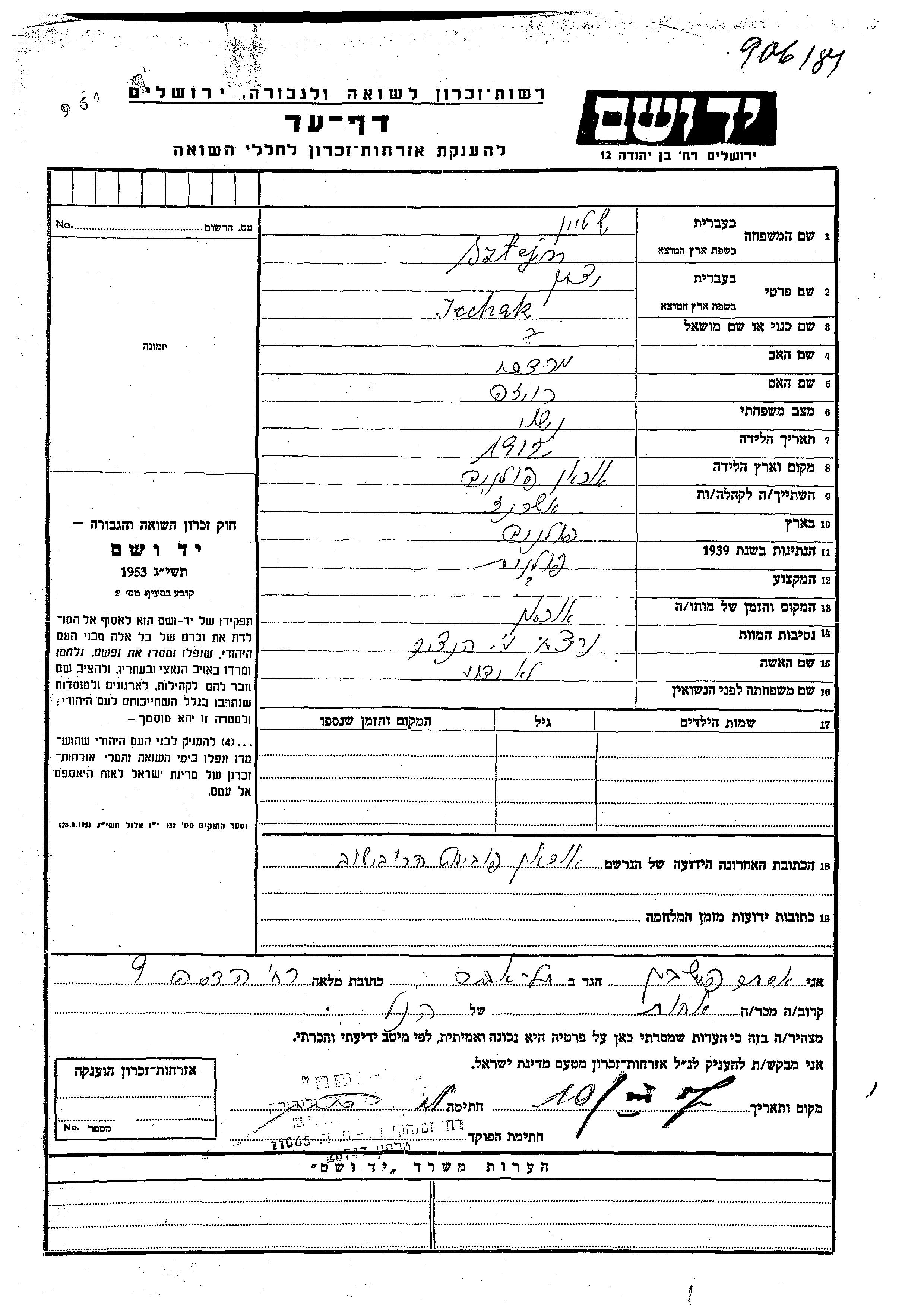 Yad Vashem - Pages of Testimony Names Memorial Collection