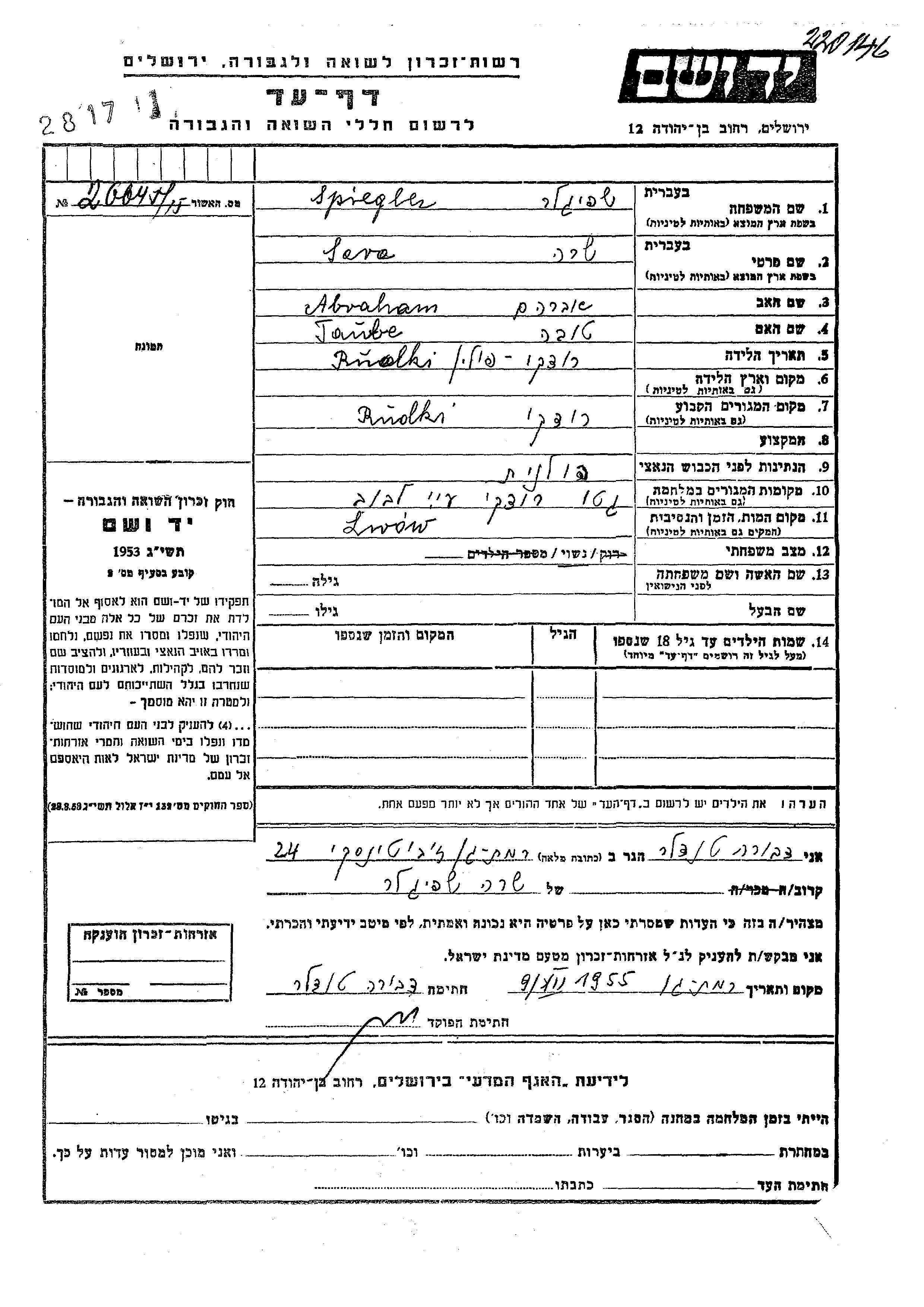Yad Vashem - Pages of Testimony Names Memorial Collection