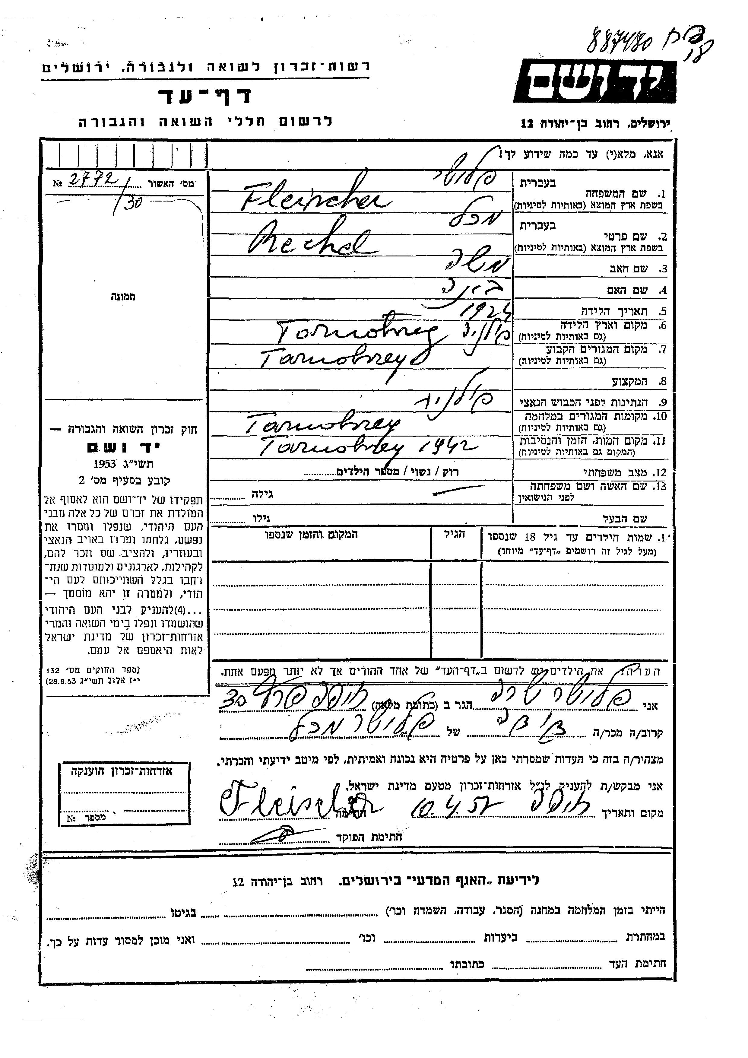 Yad Vashem - Pages of Testimony Names Memorial Collection