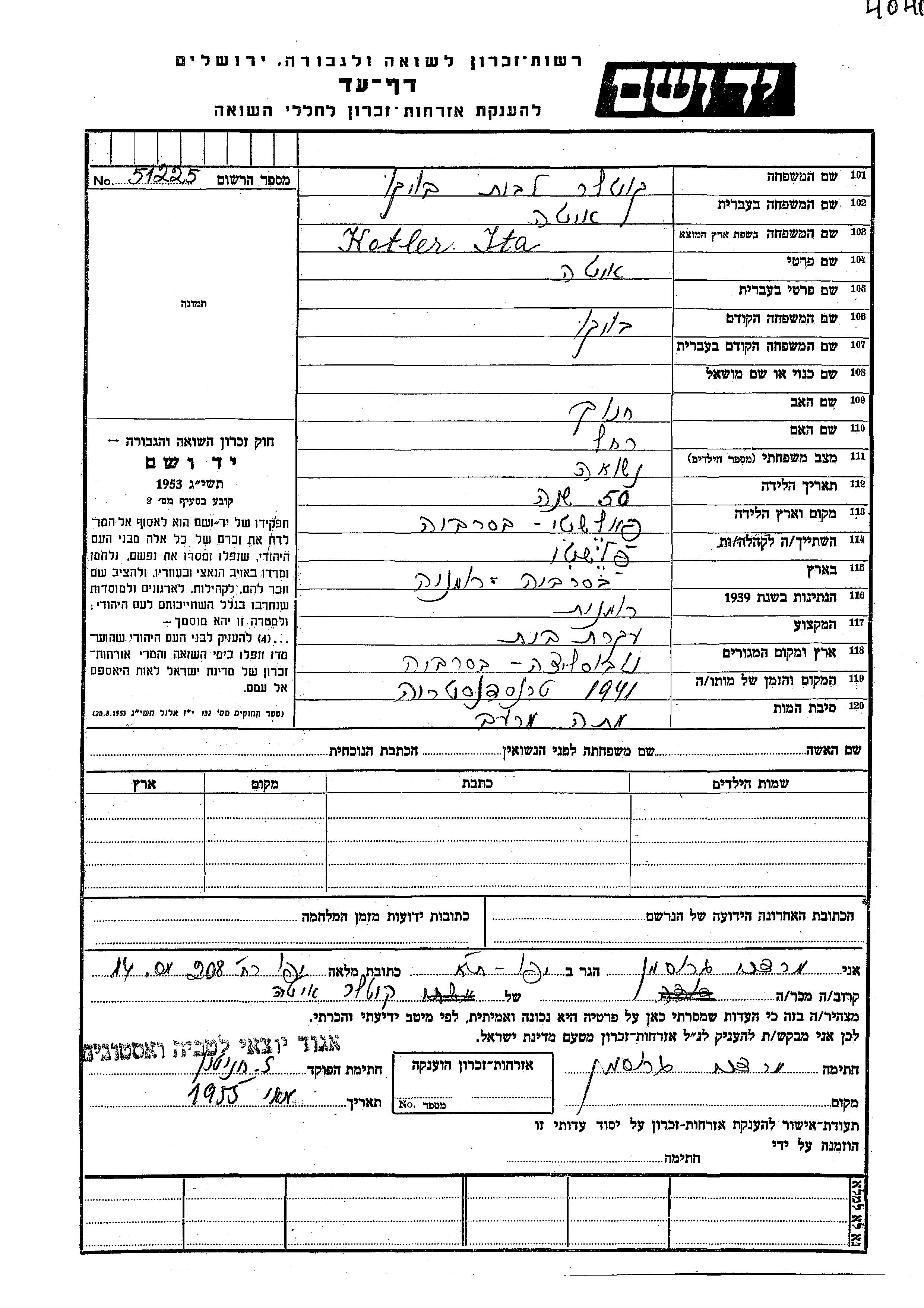 Yad Vashem - Pages of Testimony Names Memorial Collection