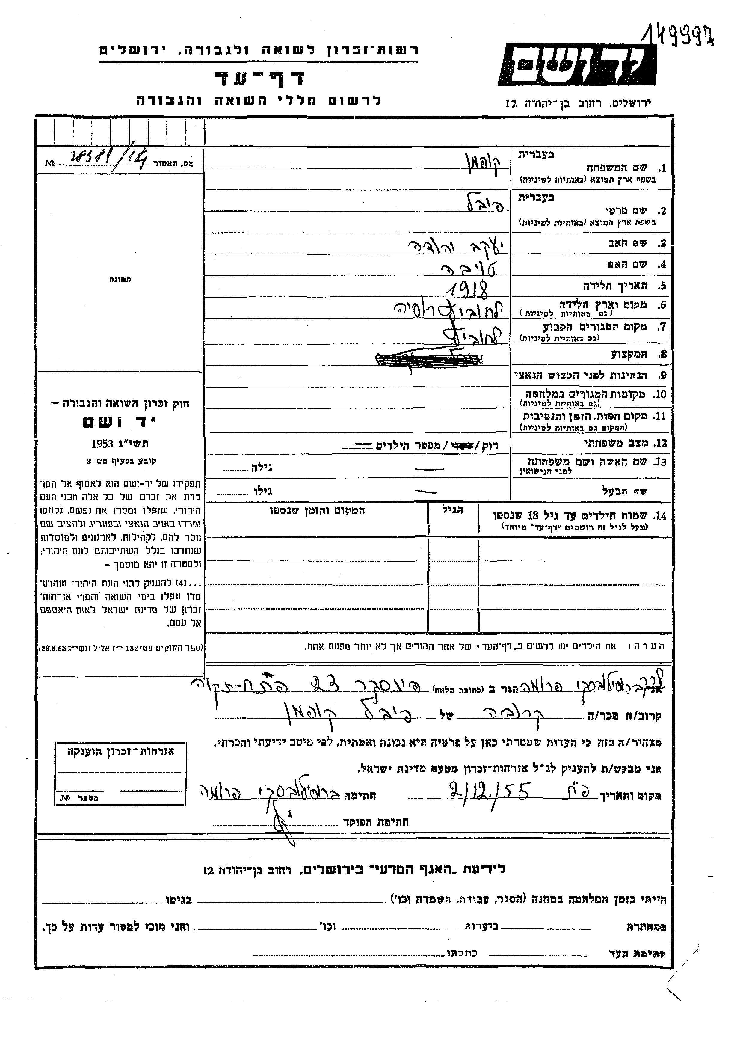Yad Vashem - Pages of Testimony Names Memorial Collection