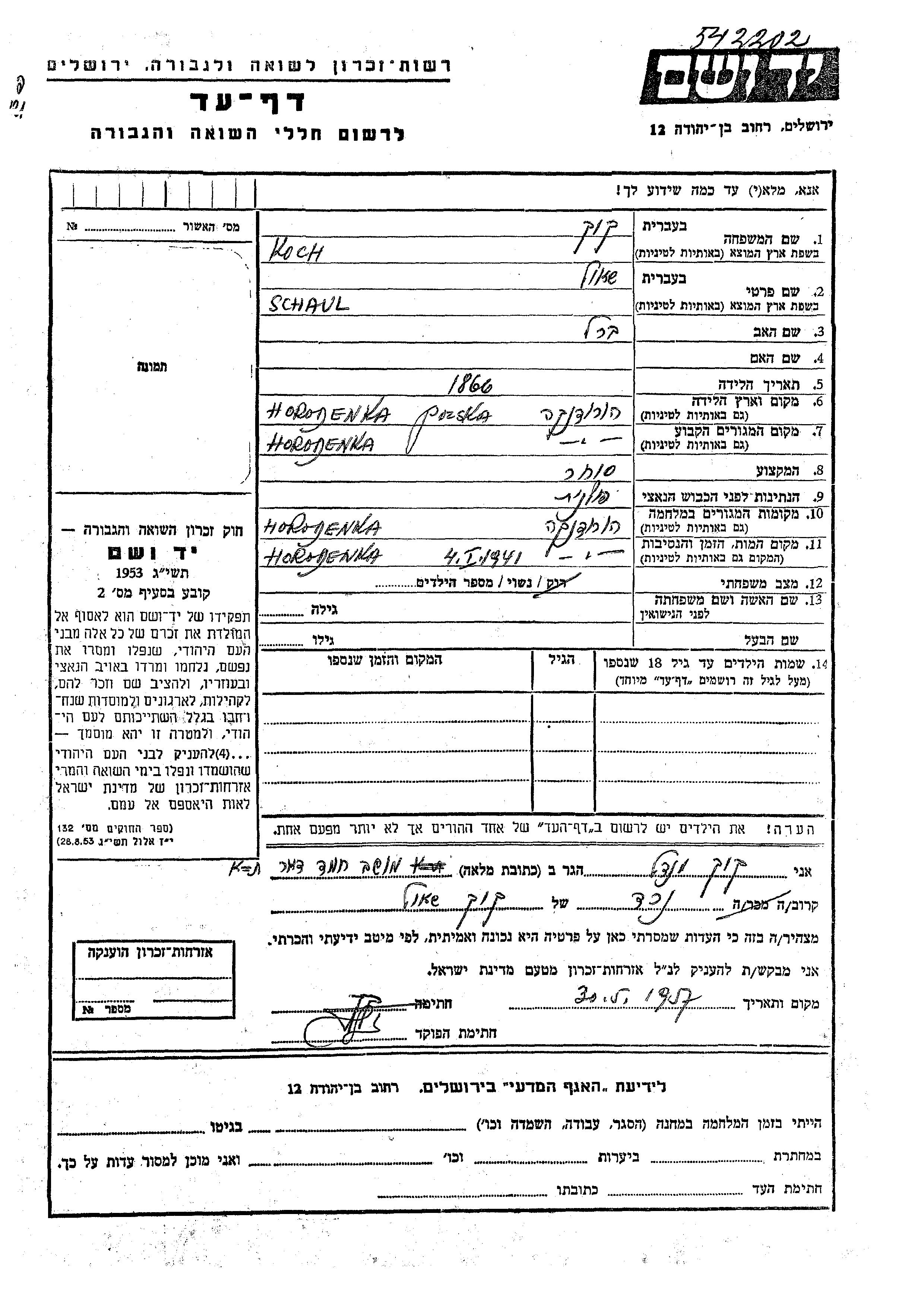 Schaul a été assassiné pendant la Shoah. Lieu de la mort: Horodenka, Pologne en 04/01/1941.