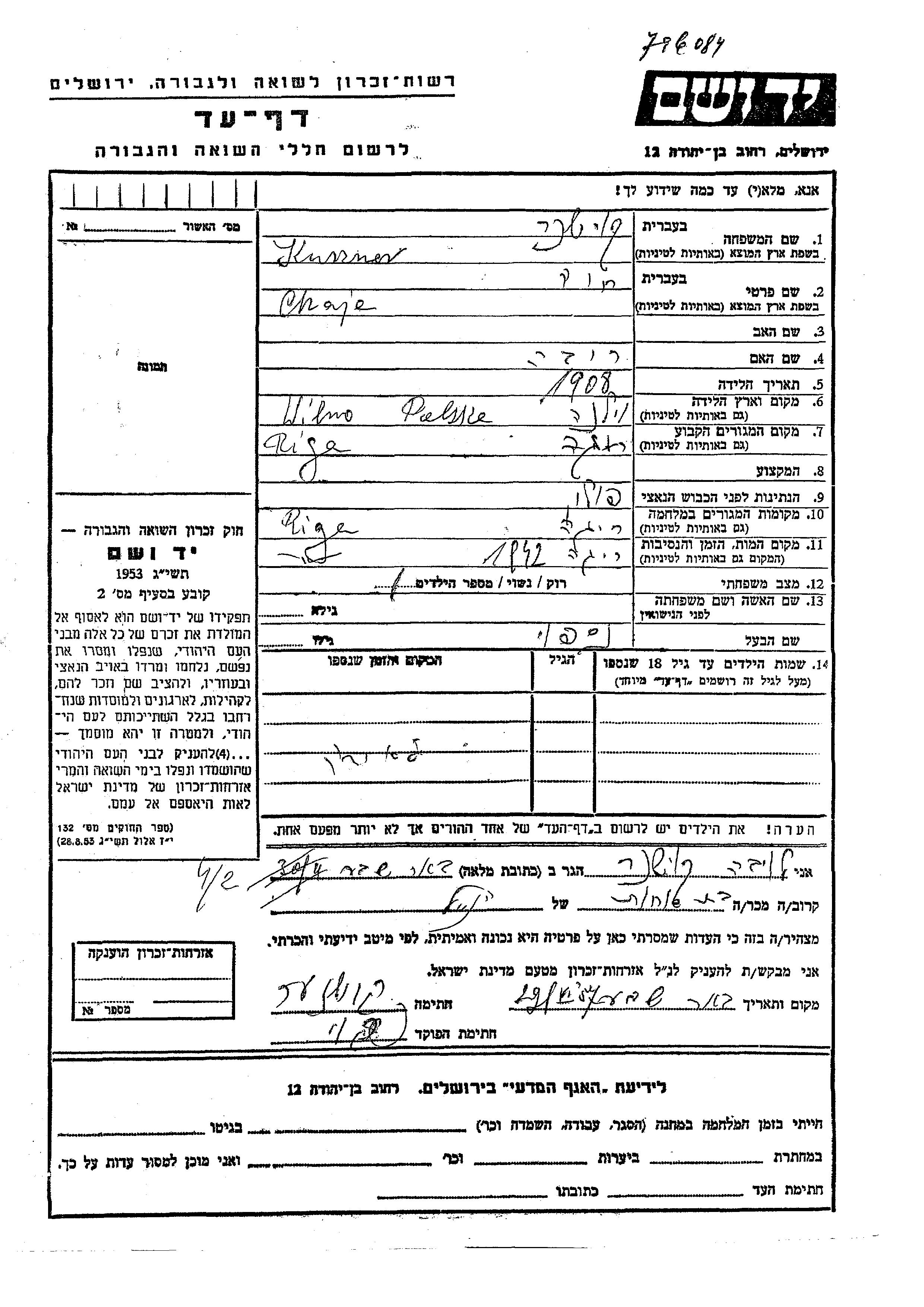 Kuszner Chaja 1908 Riga, Lettonie Feuille de témoignage