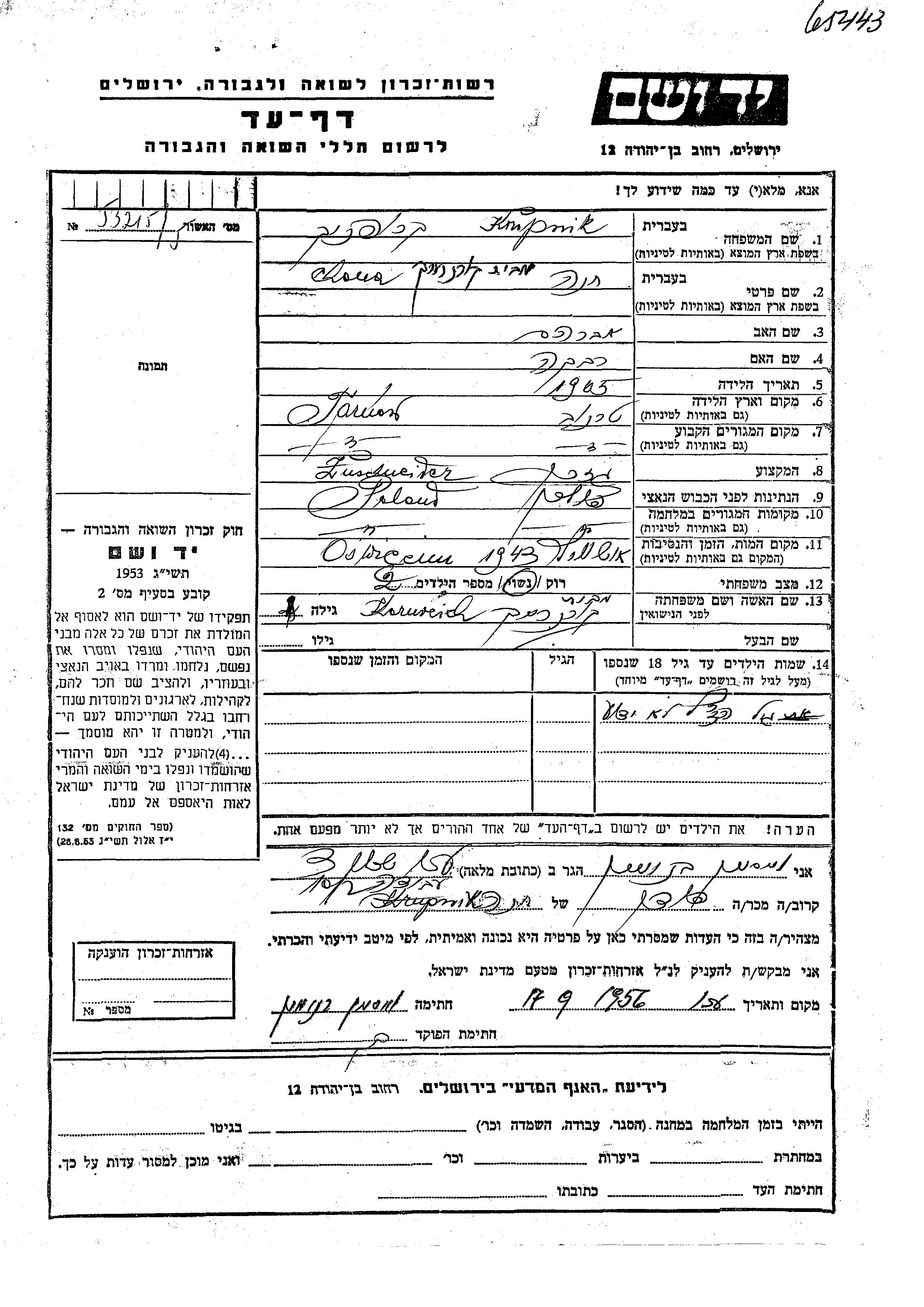 Yad Vashem - Pages of Testimony Names Memorial Collection